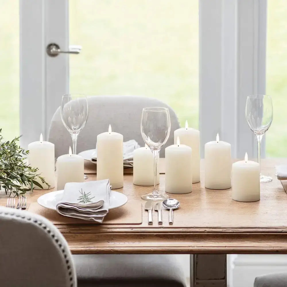 Set of 2 LED Ivory Wax Pillar Candles - 3 Size options