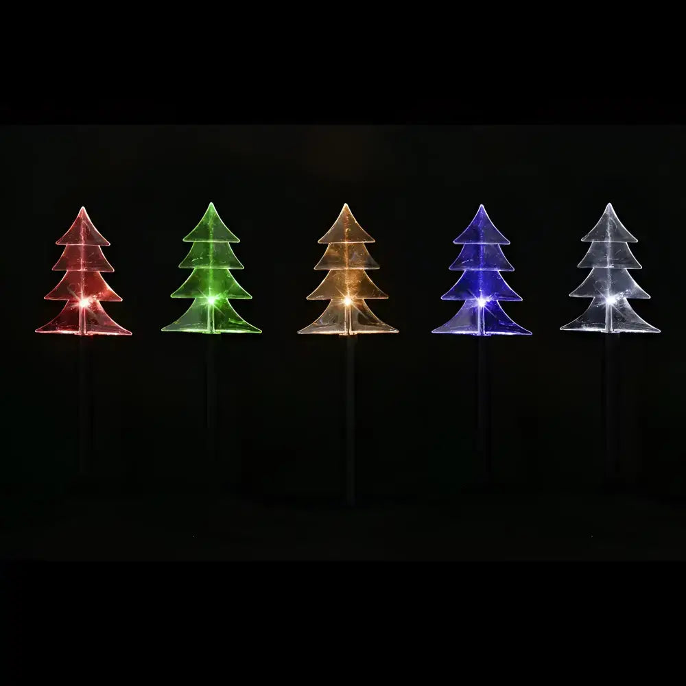 Illuminate your pathways this holiday season with the Solar Tree Shape Path Lights. This 5-pack of charming tree-shaped lights features bright LED bulbs with steady and flashing effects, perfect for adding a festive glow to your outdoor space. Solar-powered, these lights charge during the day and shine for up to 6 hours at night, providing a cost-effective and eco-friendly lighting solution. Available in Multicolor and Warm White options.