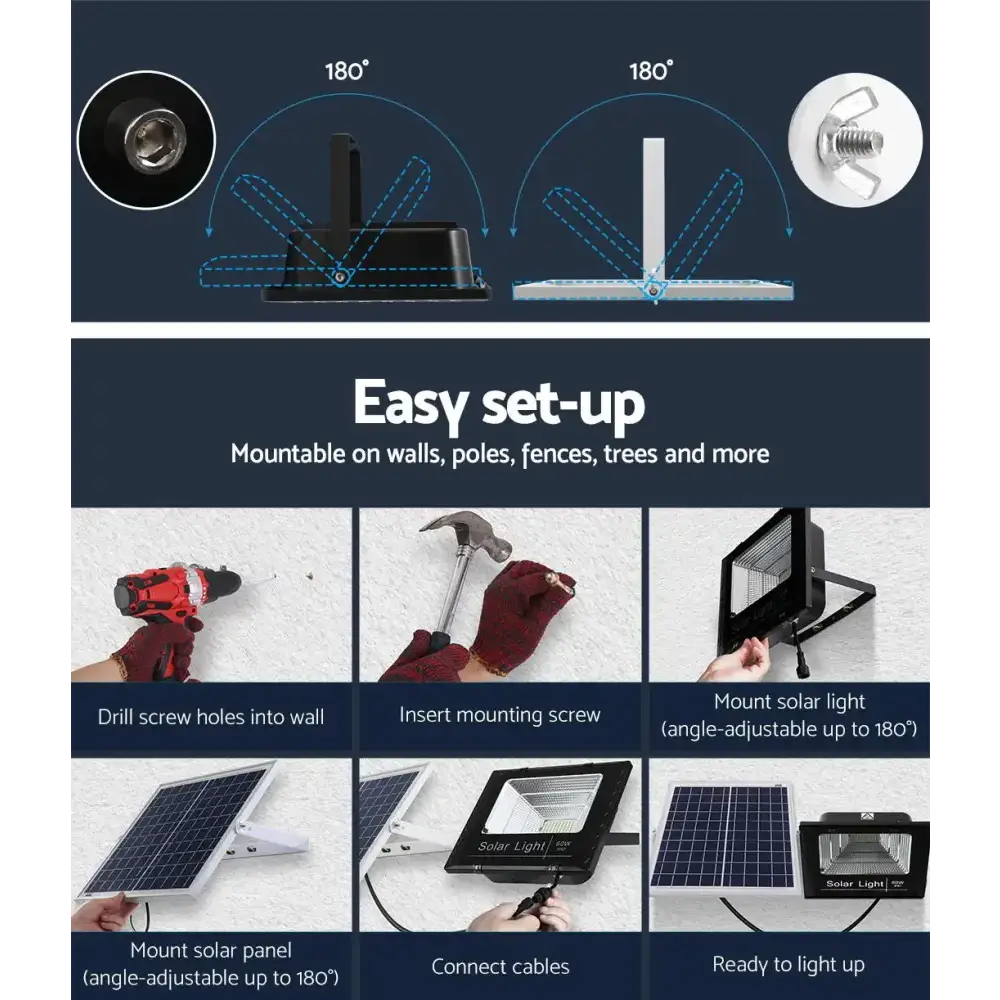 LED Solar Street Flood Light Remote Outdoor Security Lamp 60W