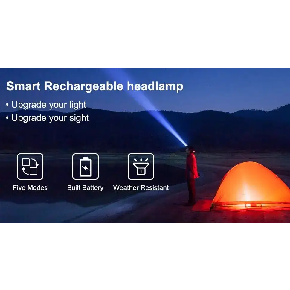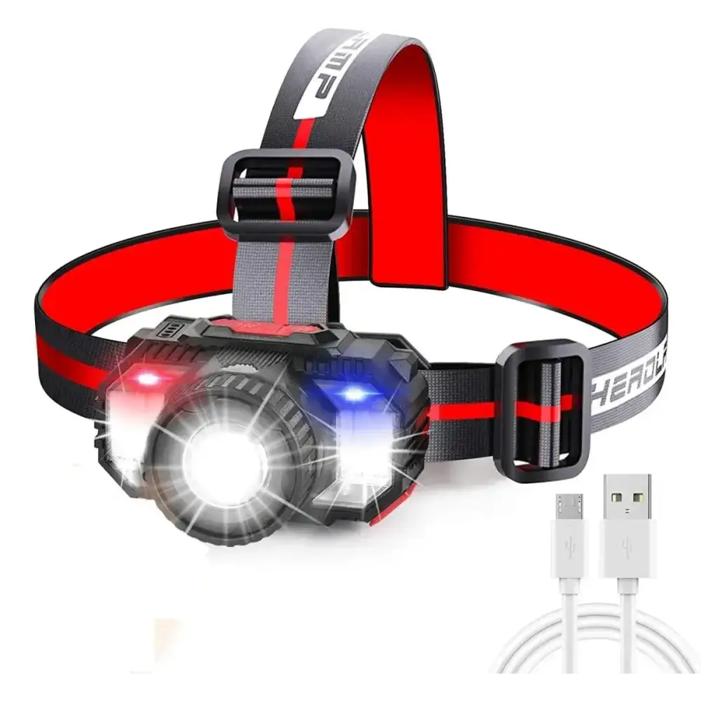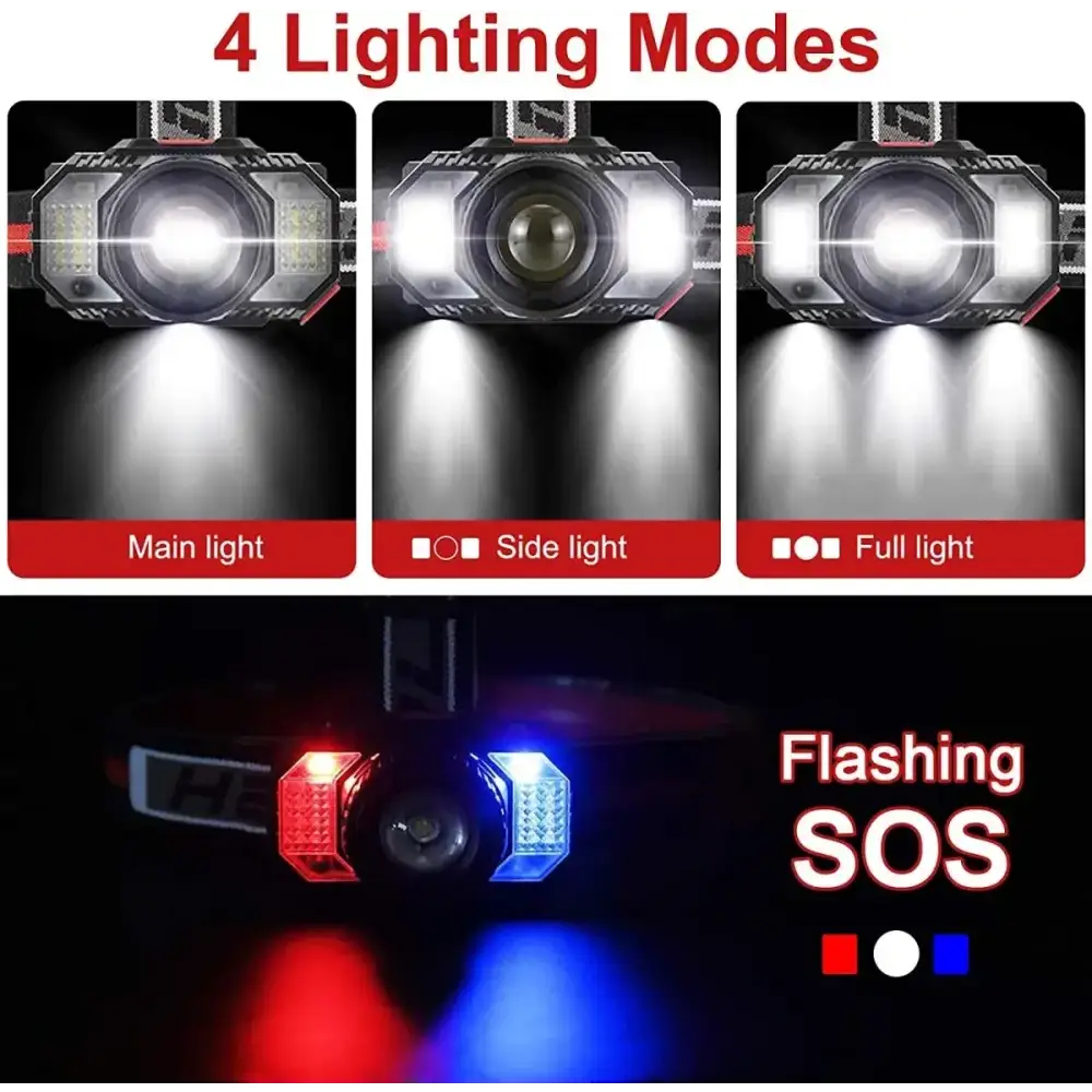 Rechargeable LED Headlamp with Motion Sensor, Zoom Function and SOS Lights for Outdoor Sports