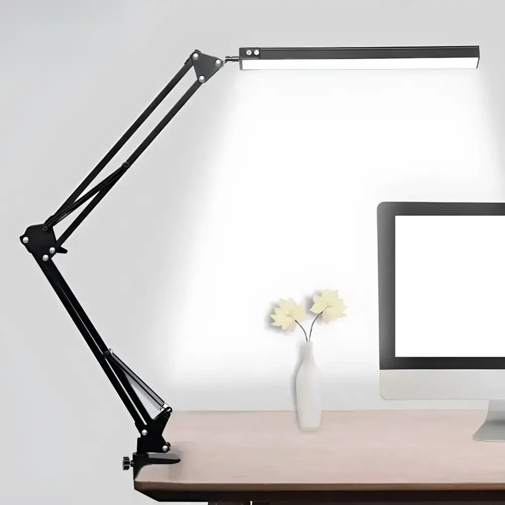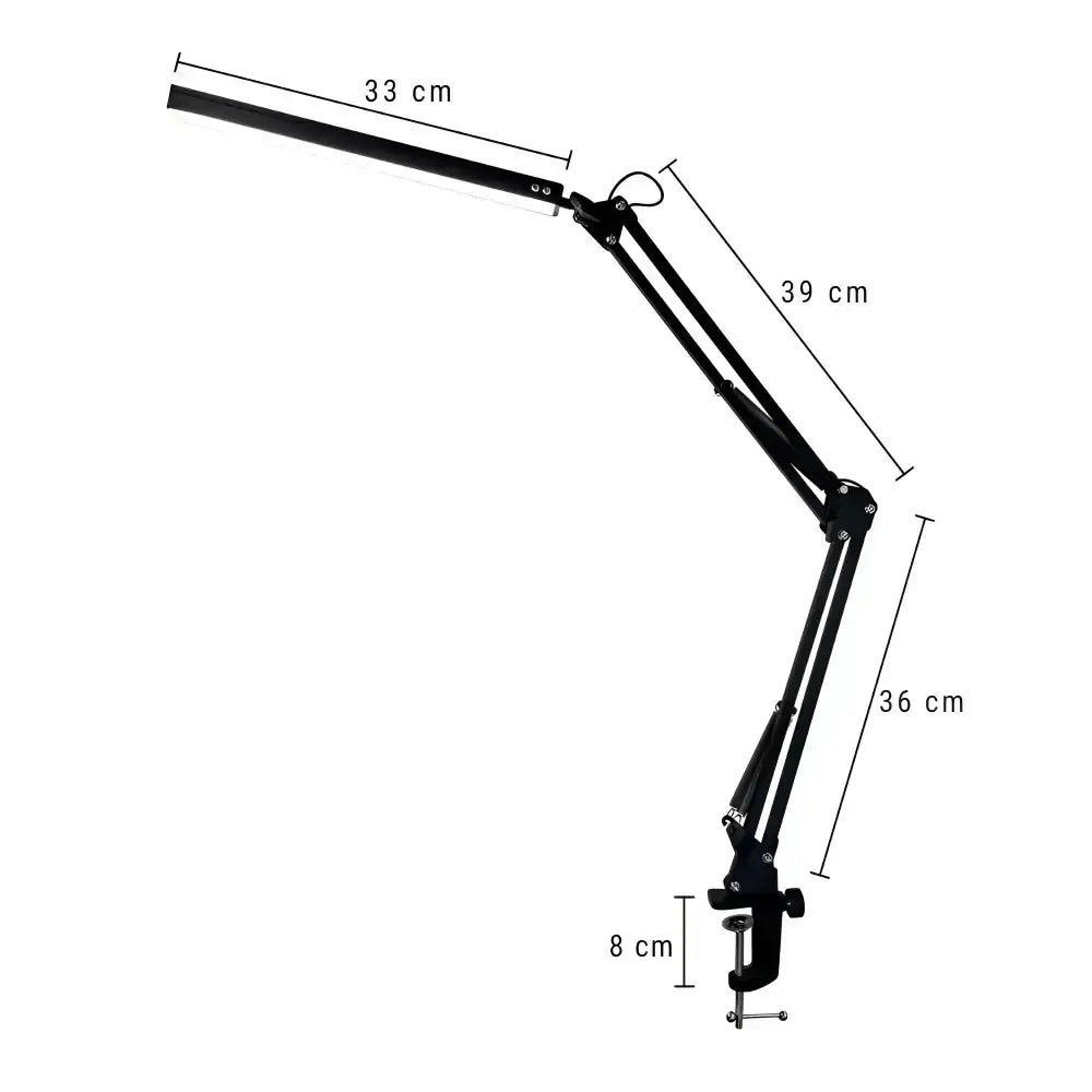 The LED desk lamp with clamp offers a sleek and practical lighting solution for a wide range of tasks. Featuring a long swing arm and USB-powered operation, it blends modern design with user-friendly functionality. The adjustable clamp allows for secure attachment to desks, tables, or shelves, making it ideal for small or limited workspaces.