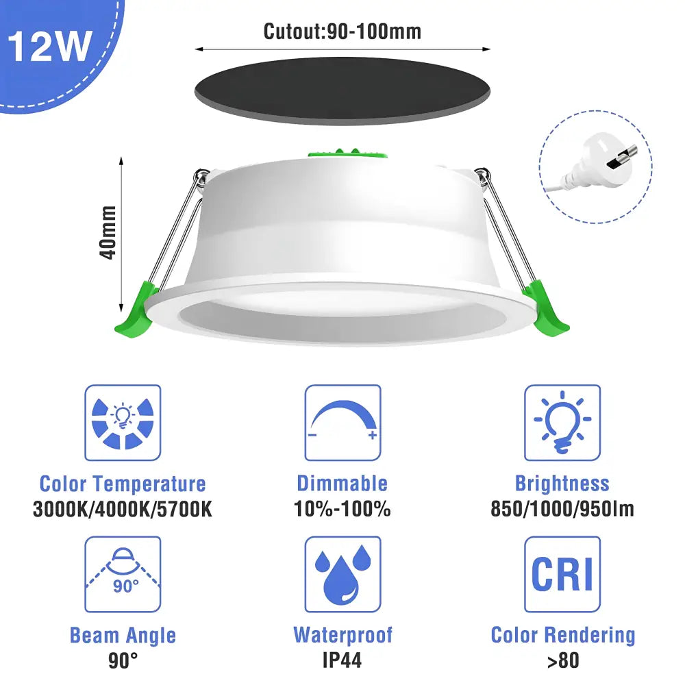 12W Tri-Colour Dimmable LED Downlight | 90mm Cut Out | Reno Optix