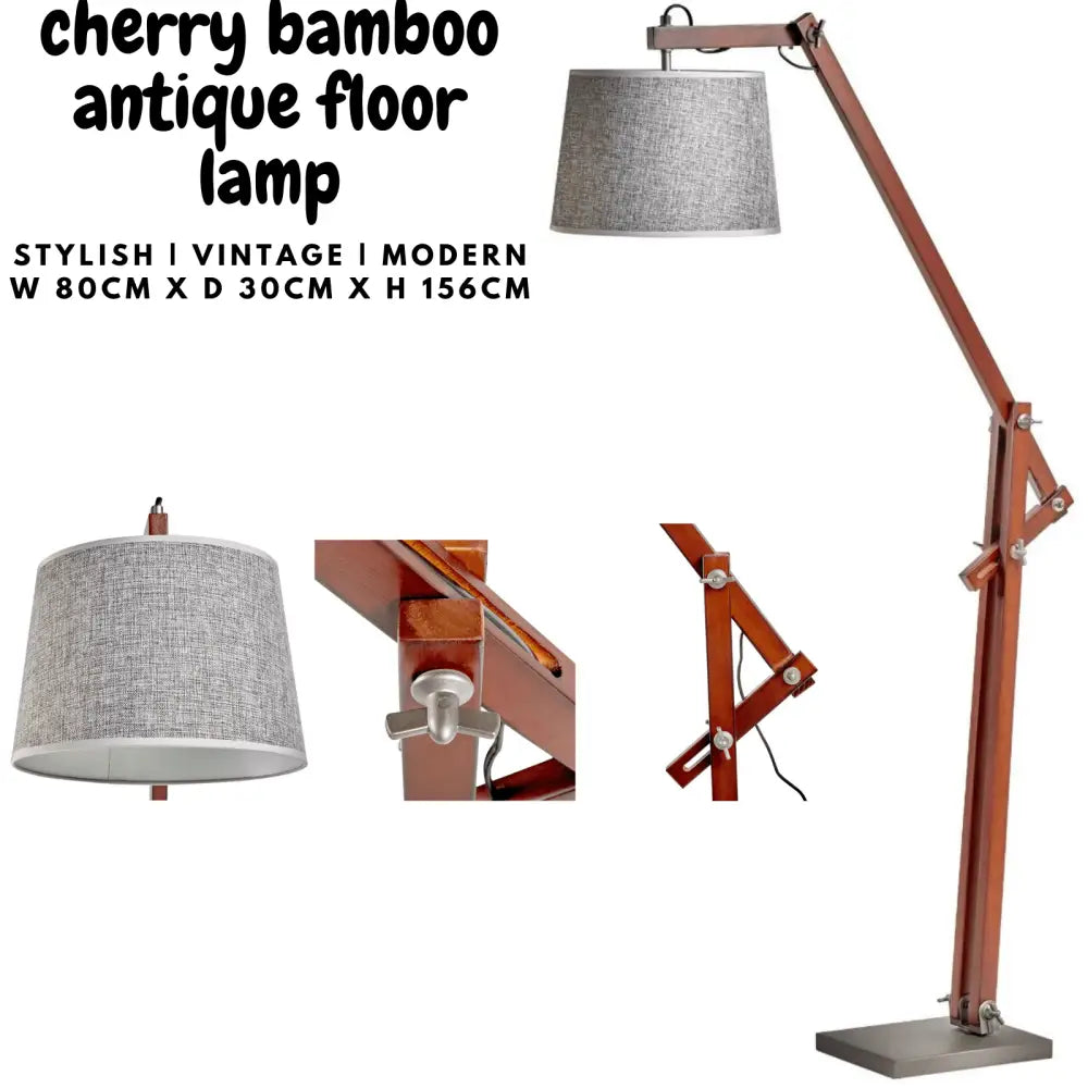 Transform your room into a haven of warmth and style with the Cherry Bamboo Antique Floor Lamp. This elegantly crafted floor lamp stands tall at 156cm, designed to infuse any space with a blend of vintage allure and contemporary flair. Perfect for creating ambient lighting, this lamp is versatile enough to complement both modern and traditional decor.