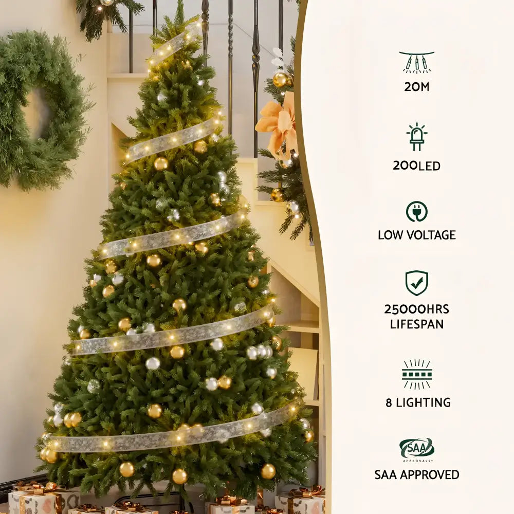 20M Christmas Lights Ribbon Fairy Light 200 LED Warm Jingle Jollys