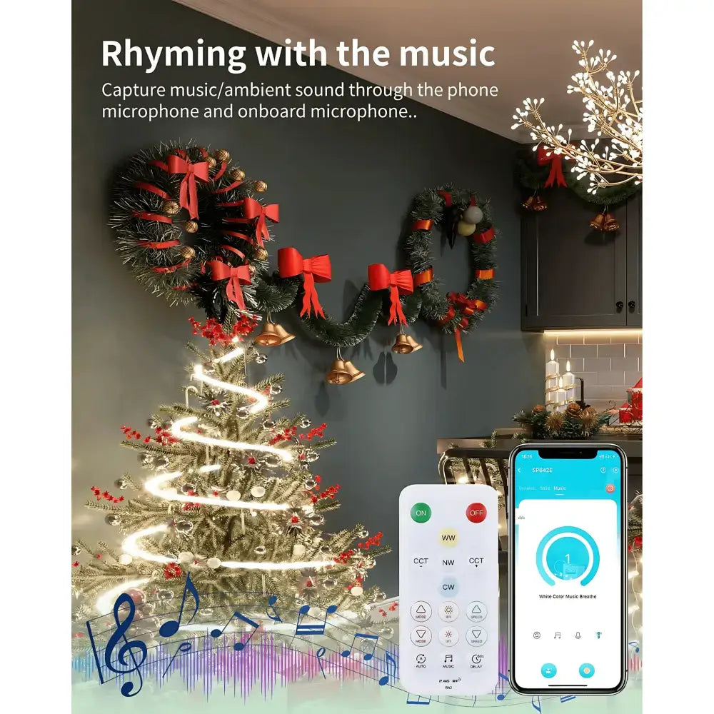 Control brightness and colour temperature using the RF remote, smartphone app, or onboard control box. Enjoy advanced features like timer settings, memory recall, and a dynamic music mode that syncs light effects with audio via phone mic, stream, or built-in mic—ideal for home ambiance, parties, or events.