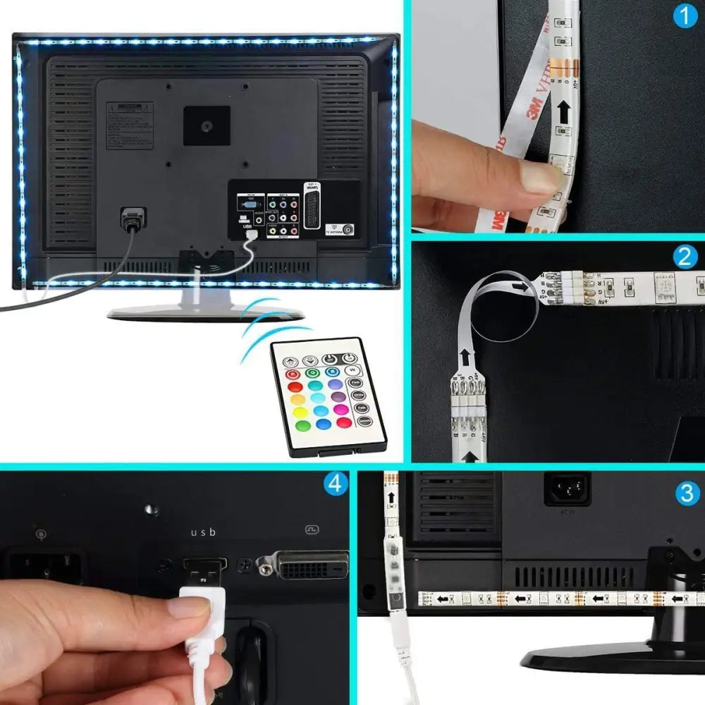 - Superior tv light strip: Ultra-long length makes the led strip lights a perfect decoration for 40 - 60 inch TV. 4 x 50cm user-friendly design covers every side of your TV. Colorful lighting offers you better visual enjoyment.