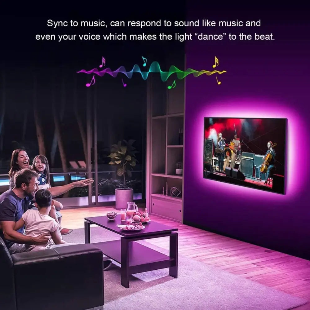 - Dual Simple Control: Remote control enables you to change TV backlight colors or brightness even 10m away. Control box with only one button makes operation convenient. Tap, change, relax! Visualize the Beat: Built-in high sensitive mic, the tv strip lights sync with ambient sound. Turn on your favorite movie, and then LED TV backlights change colors and speeds based on rhythm. Bring your entertainment to a new height.