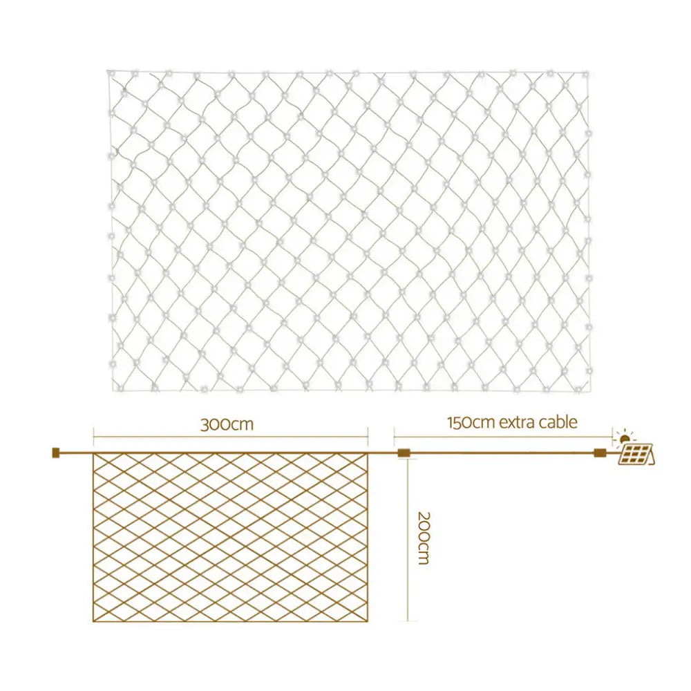 Brighten up your space with the Net Lights, measuring 3M x 2M, perfect for both indoor and outdoor settings. Boasting a lifespan of up to 25,000 hours, these lights offer eight captivating lighting modes that can be easily switched with the included controller. The solar-powered design with low power consumption ensures energy efficiency and eco-friendliness. Featuring a 1.5M leading cable for versatile setup and water-resistant construction, these net lights provide safe, low voltage illumination for any occasion.