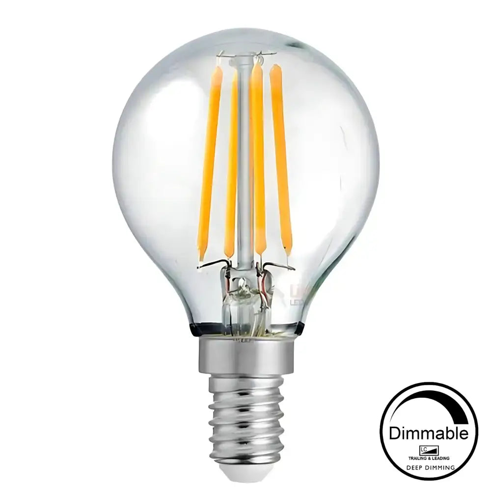 The 4W Fancy Round G45 Dimmable LED Bulb E14 Clear combines decorative elegance with energy efficiency. Enjoy warm white light, dimmable functionality, and long-lasting performance in a compact, stylish design.