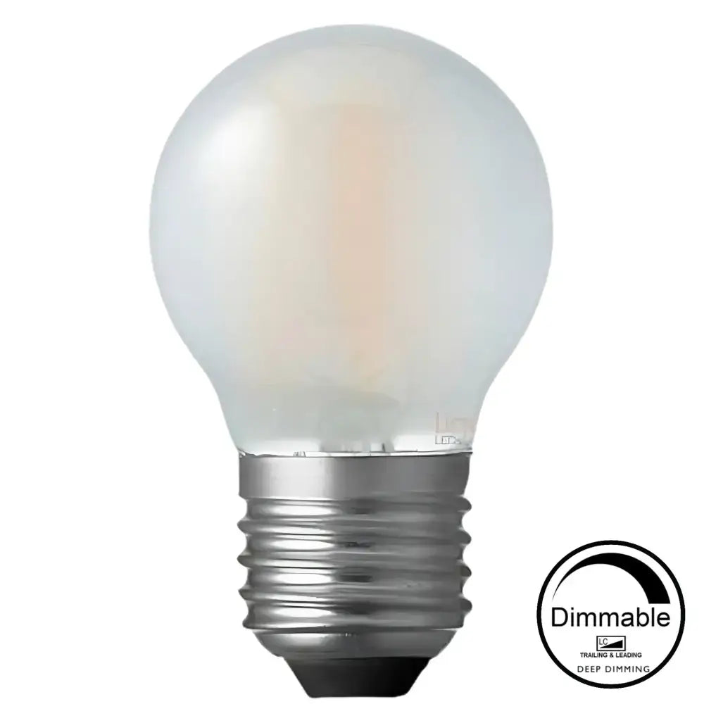 Experience timeless design and modern efficiency with the 4W Fancy Round G45 Dimmable LED Light Bulb E27 Frost in Warm White.