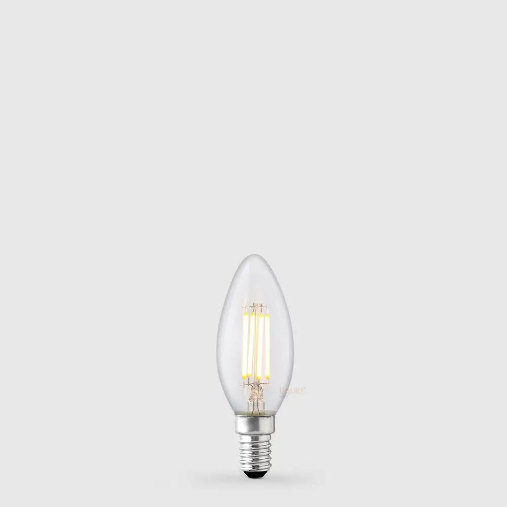 Experience the perfect blend of timeless design and modern efficiency with the 4W Candle C35 Dimmable LED Light Bulb E14 Clear in Warm White.