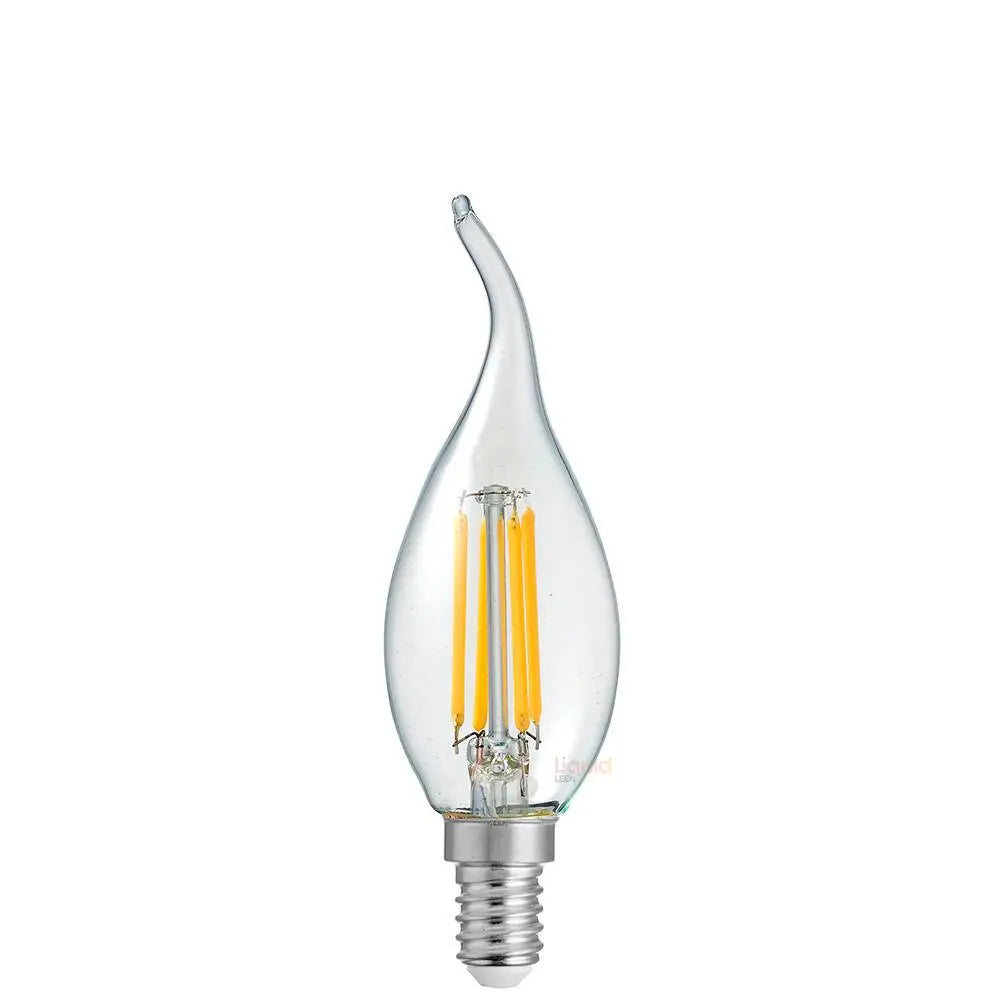 The main appeal of the 4-watt Clear Flame Tip Candle (E14) LED Filament Bulb 4000 Kelvin lies in how it features a combination of old and new, blending the classic appearance of a candle-shaped incandescent bulb with 21st century LED lighting technology. This results in a lighting device that smoothens the transition from old to new light bulbs.