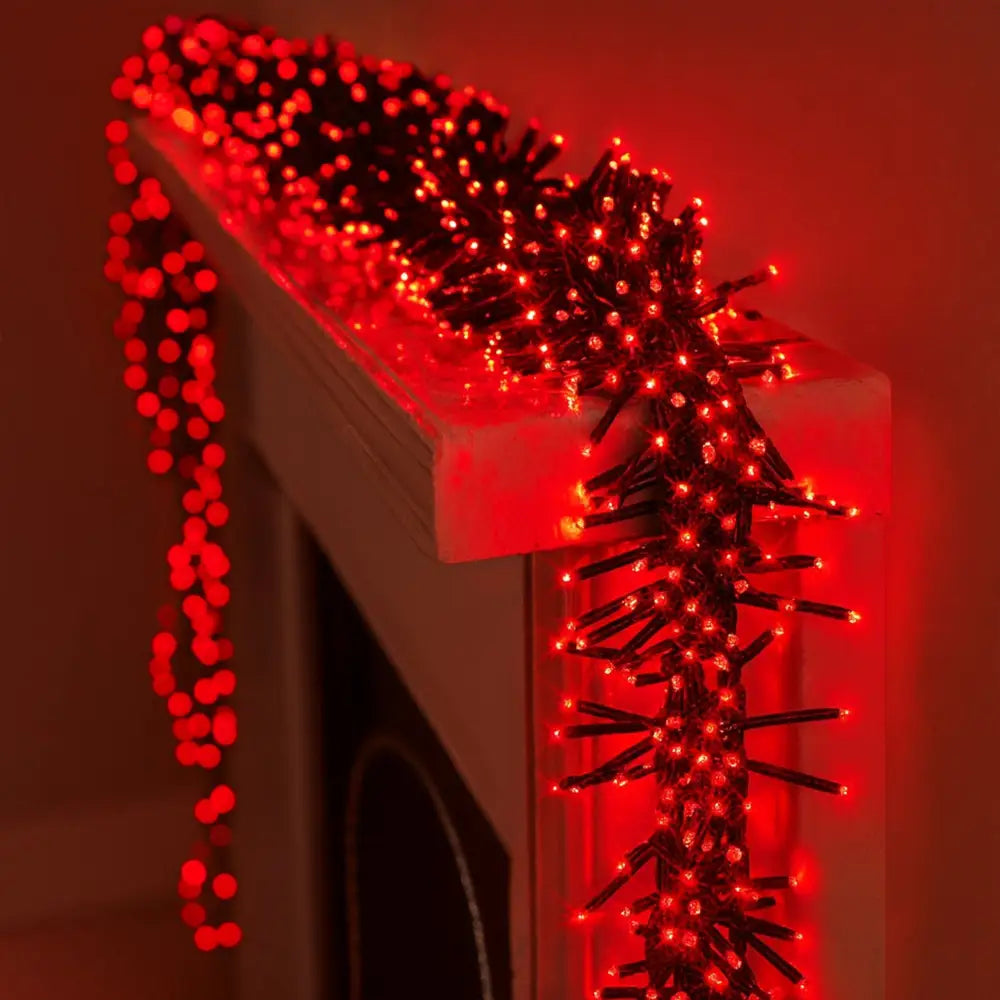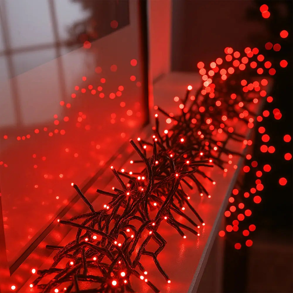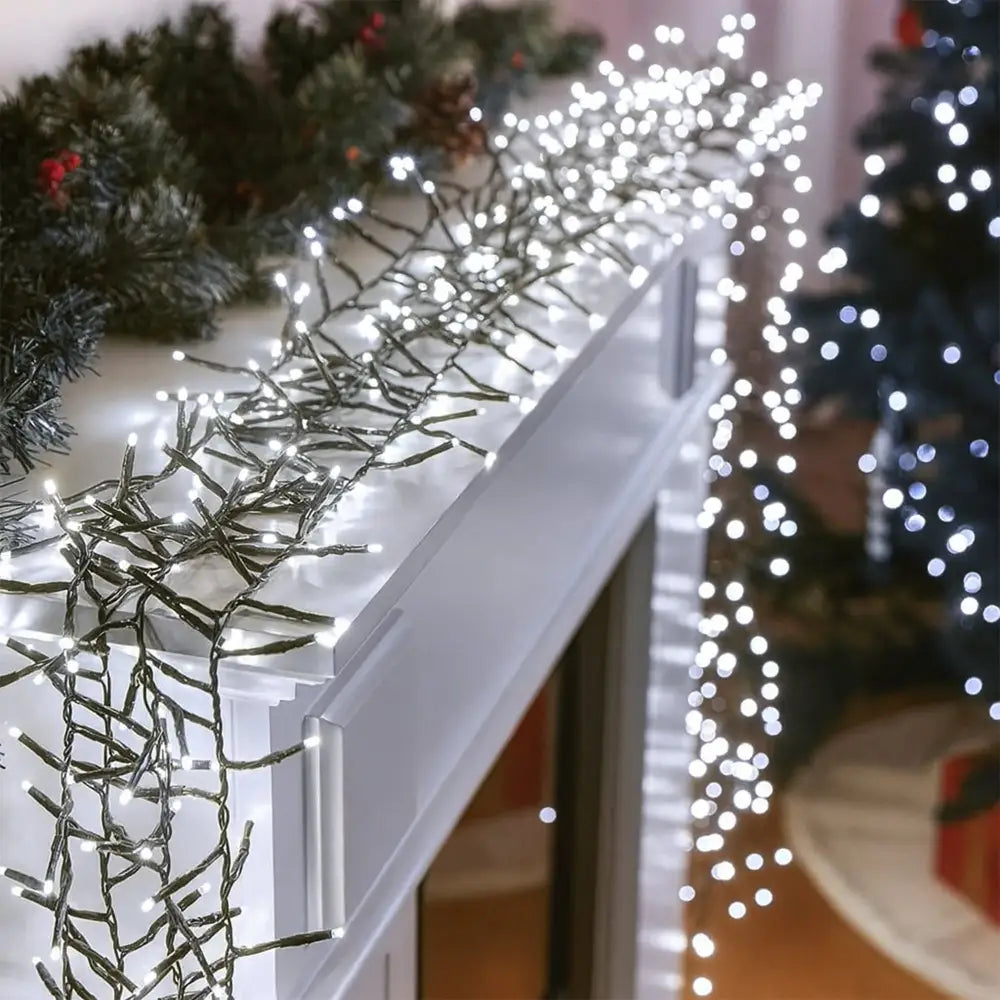 The 500 LED connectable cluster light is a joyous addition to a room needing some Christmas cheer during the festive season. The 6.5 metre long lighting decoration can be used in many applications, from hanging overhead and framing objects to a table feature and Christmas tree decoration.