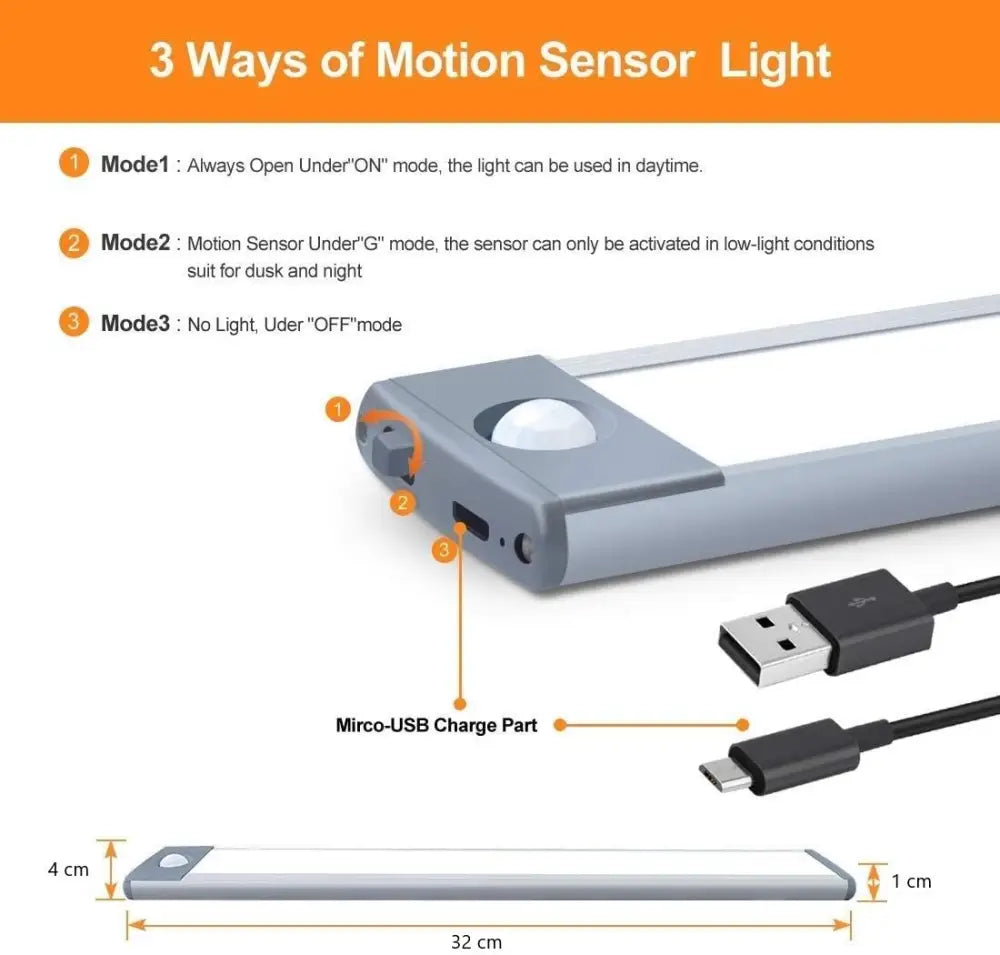 - 2 Ways to Install, Stick Anywhere in Your Home: The led motion lighting for the closet built-in magnet, anybody can install and remove it to charge easily without tool. You can stick it on the iron surface. when need change place. You can take under cabinet light off anytime.using its magnetic strip on any non-iron article surface, like stairs, cabinets, bedroom, garage, etc.