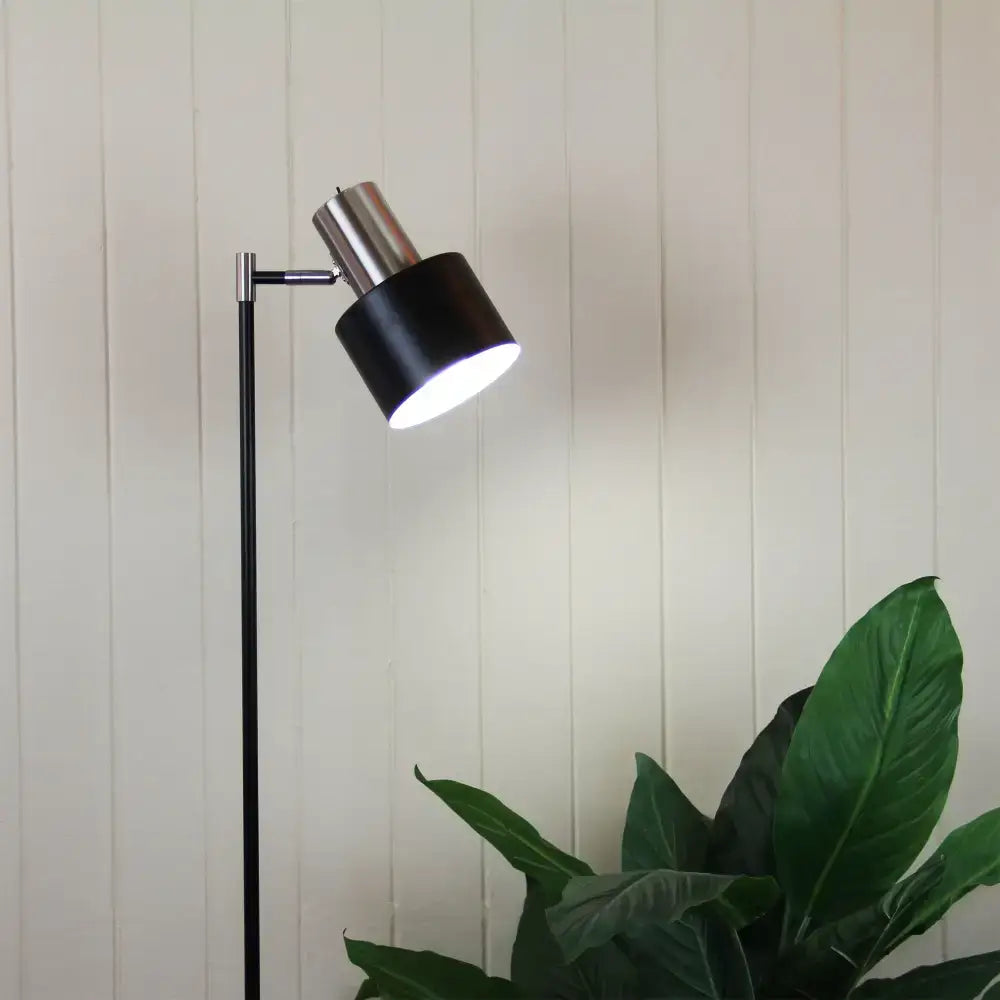 Ari 1 Light Floor Lamp Black With Brushed Chrome Head