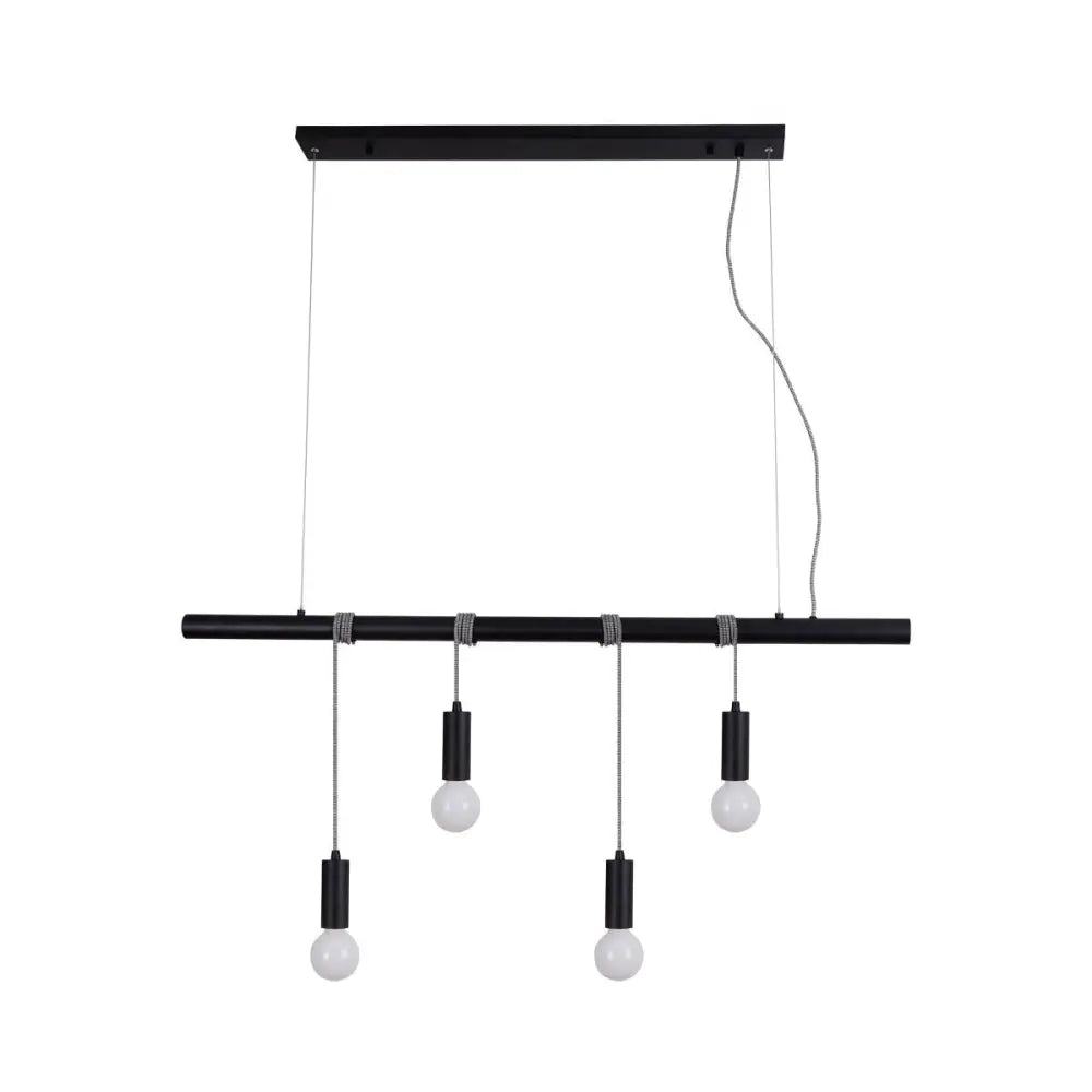 The four globe holders that drop from the lighting bar each have long grey braided cords that can be wrapped around the lighting bar to set heights individually. The heights can set to your preference, whether after a staggered look, or a short non-invasive drop, or a long, purposeful hang. The Bikkel Four Light Pendant comes in black and white and requires four E27 globes.