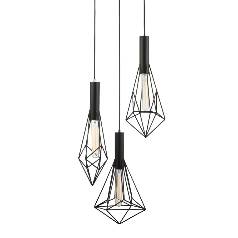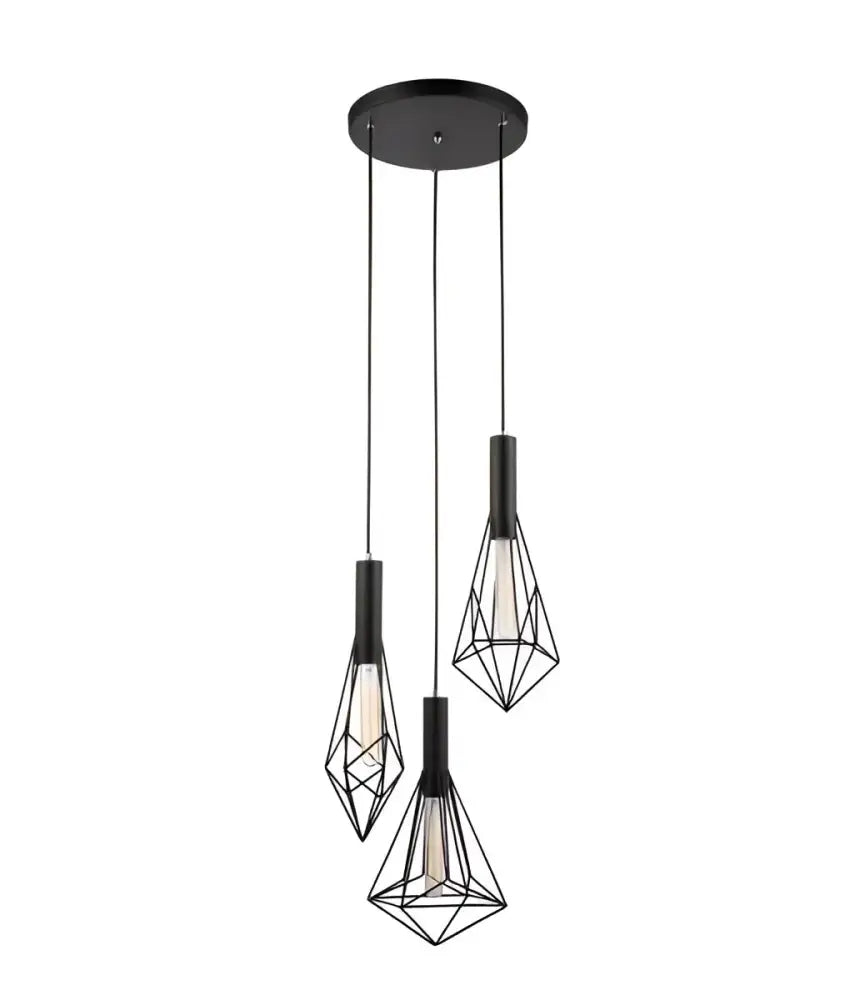 The CLA Blackband Triple Cluster Pendant Light showcases a bold and modern iron cage design finished in sleek black, making it a stylish addition to both residential and commercial interiors. Its open-frame design allows the light to shine through beautifully, creating a warm and inviting atmosphere.