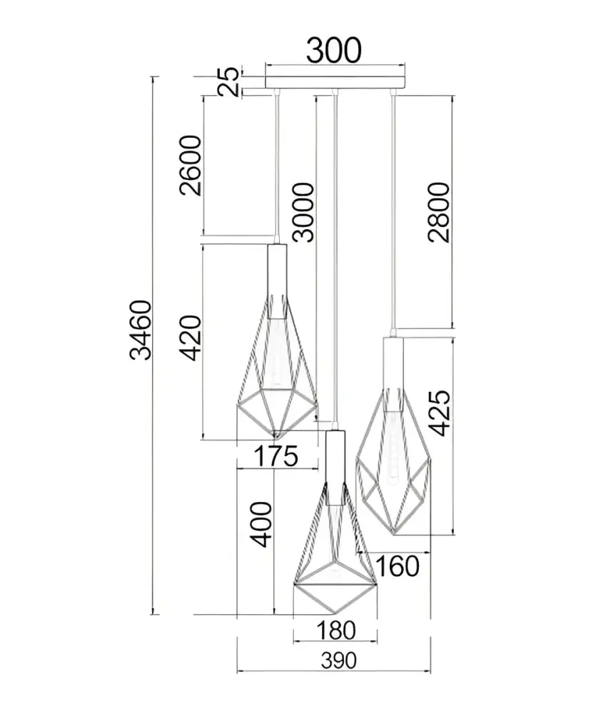 - Triple cluster pendant with 3 x E27 lampholders (72W max each)