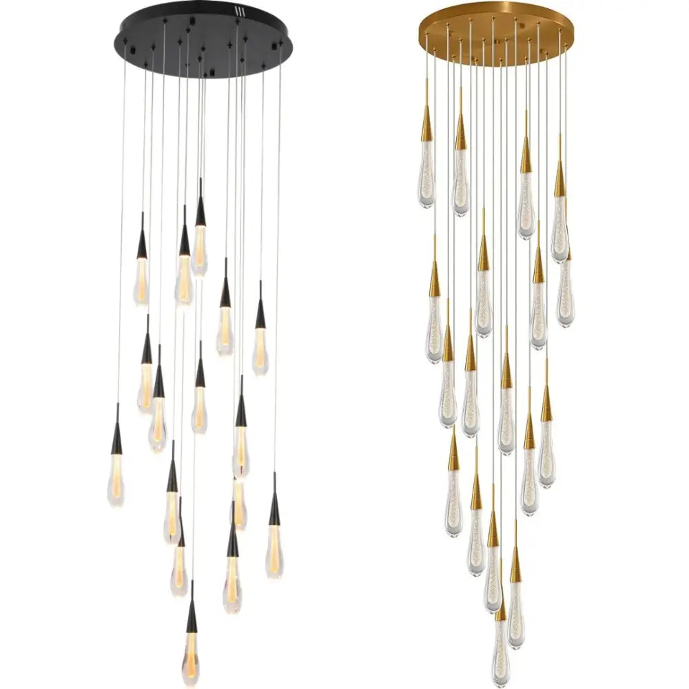 Rayne 16-Light Drop Crystal LED Chandelier – Matte Black or Gilded Gold