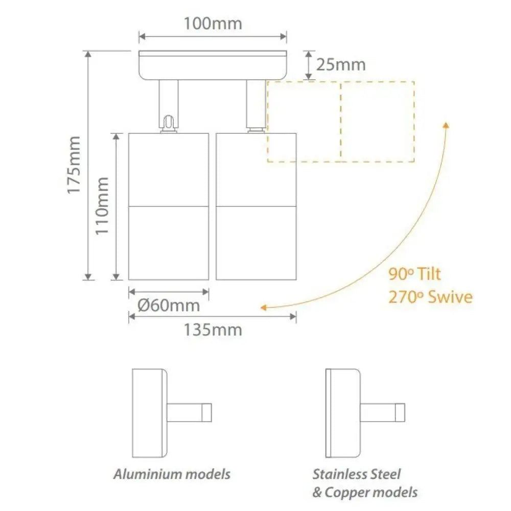 The SHADOW Series 2 Light Adjustable Wall Light offers a durable weatherproof solution to lighting up larger areas where ambient lighting is required. Available in solid finishes (316 Stainless Steel and Copper), Anodised Titanium Silver Aluminium and Powder coated Aluminium (Textured Black and White). Suits a GU10 lamp. Backed by a 3 Year Warranty.