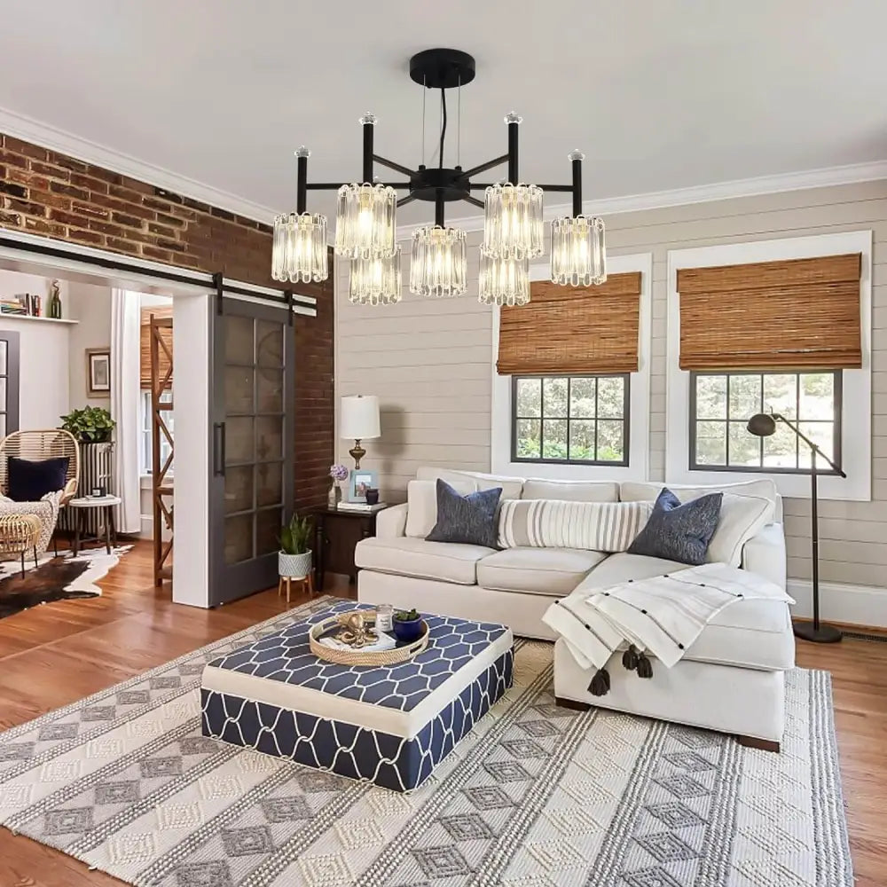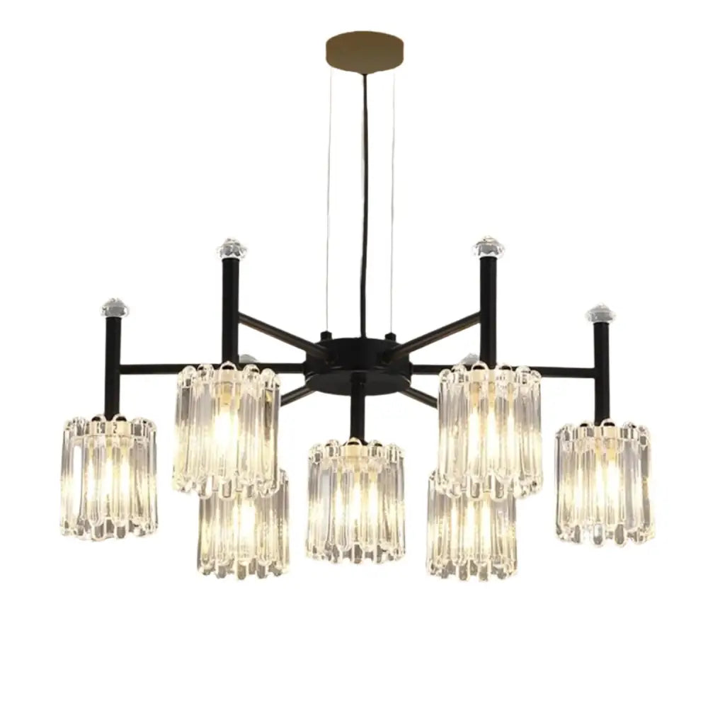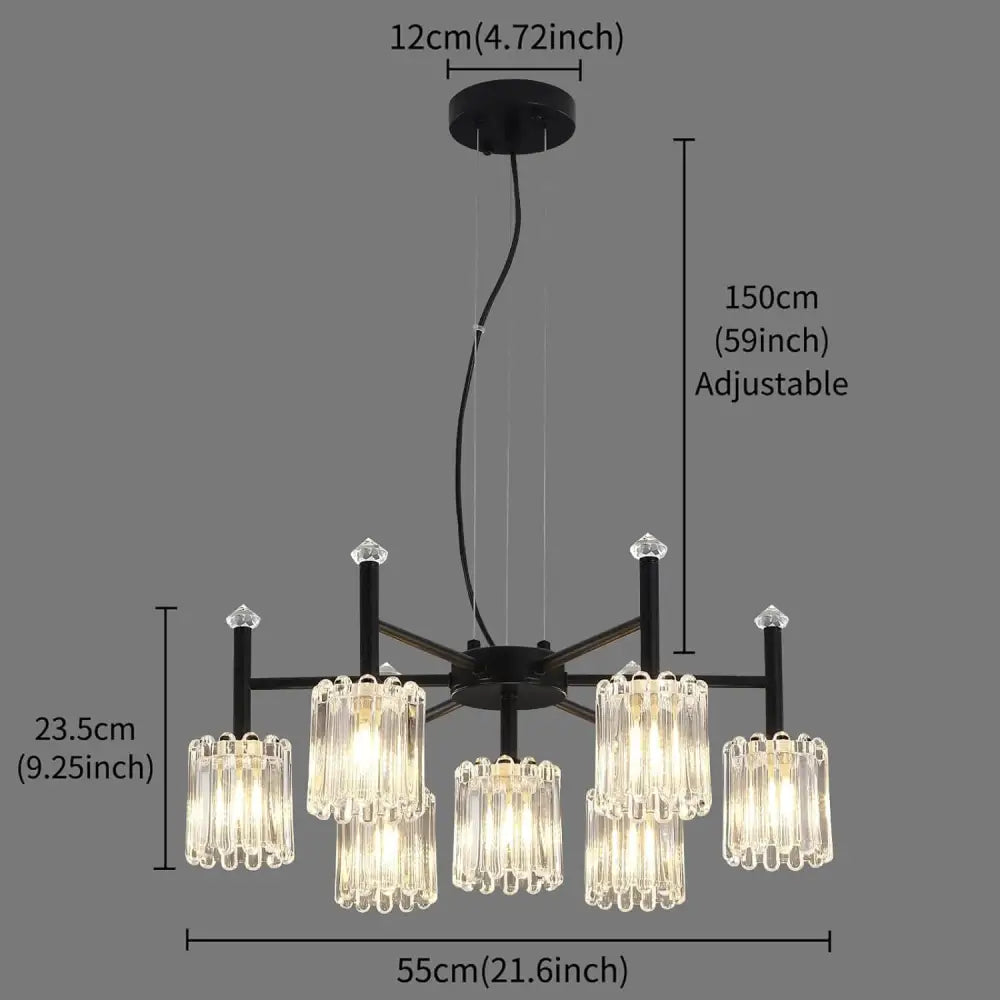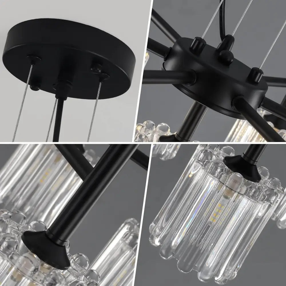 - This modern luxury chandelier features an acrylic lampshade and matte black metal frame, creating a dreamlike atmosphere in any space. Perfect for the dining room, kitchen, bedroom, restaurant, living room, and office.