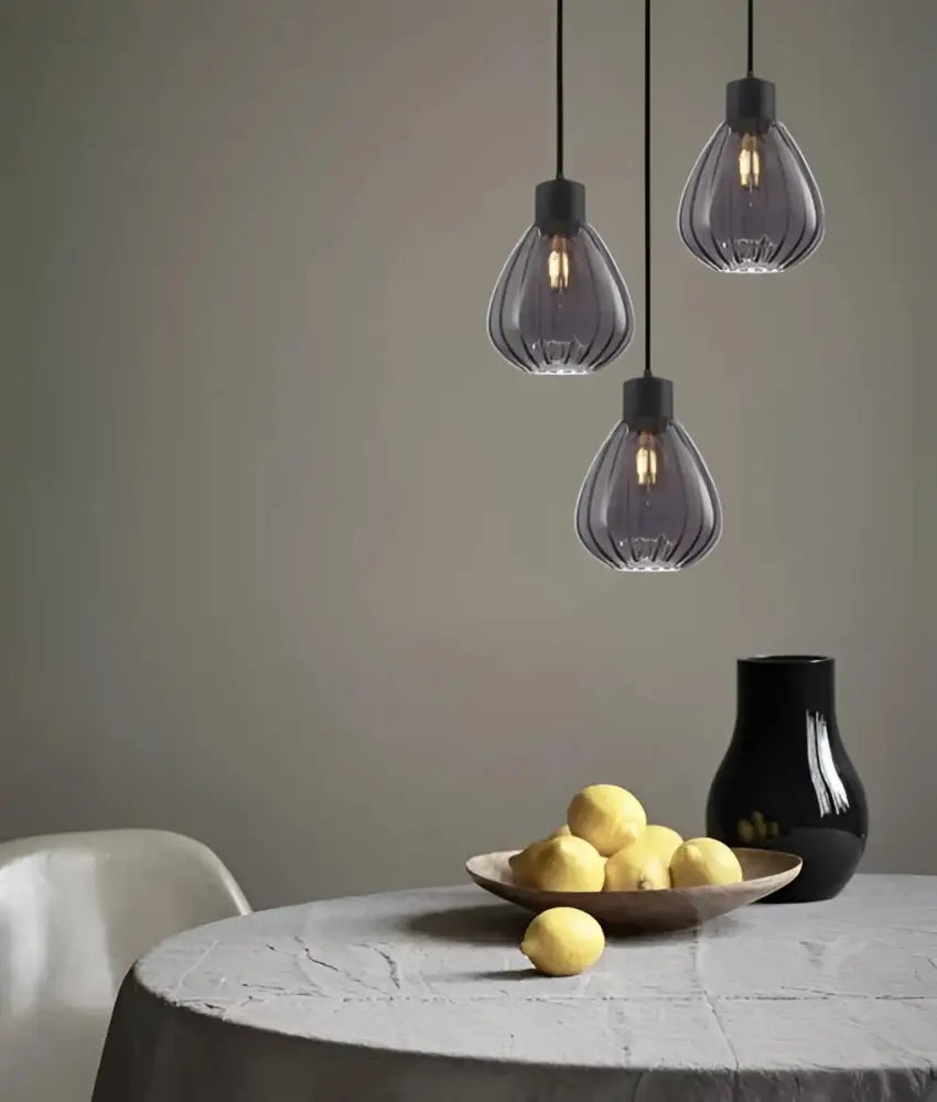 Interior Black Smoke Wine Glass Ribbed 3 Light Cluster Pendant - TULIP2X3R