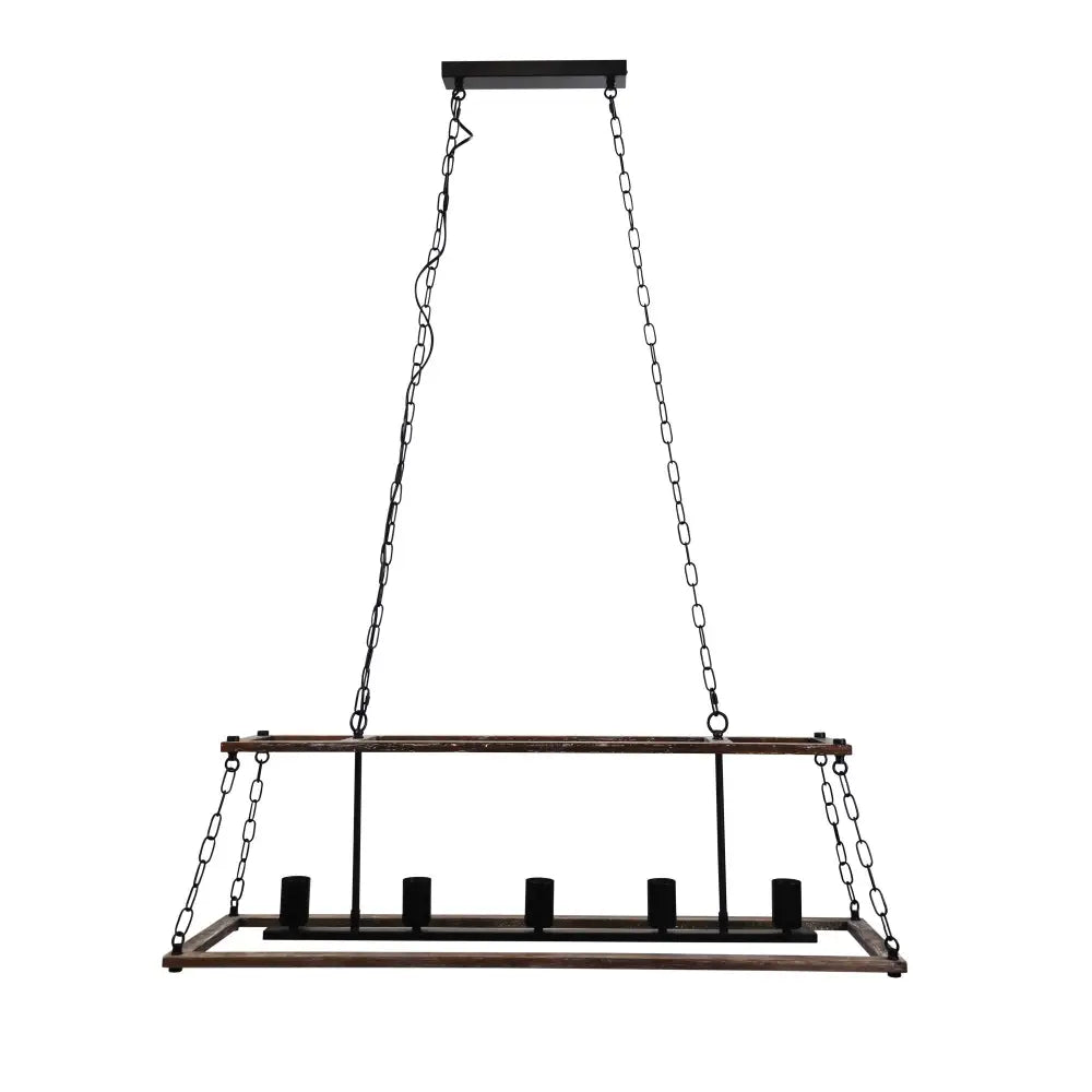 - The ISLAND 5 light pendant is crafted from distressed timber.