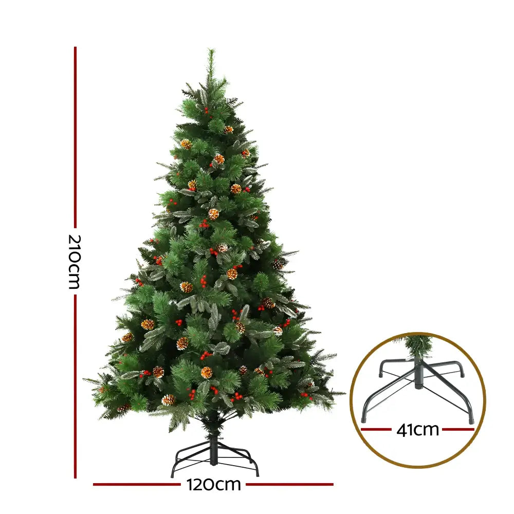 2.1M Christmas Tree with Pine Cones Red Berries Prelit LED Warm Lights