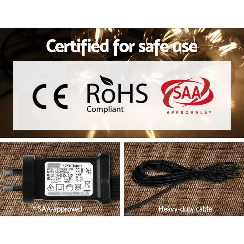 Our Festoon String Lights are great not only for wedding and birthday parties or special events, but also for creating a warm, inviting ambience with its bright and mellow glow. Suitable for both indoor and outdoor use, its IP44 rating means that it can be used in the rain and all weather conditions. Each bulb draws a very low voltage and is placed 90cm equally apart from each other throughout its 41m length for an even distribution of illumination and brightness. Not least, the each bulb has a 20,000 hours lifespan so that you can get to use the string lights for quite a while.