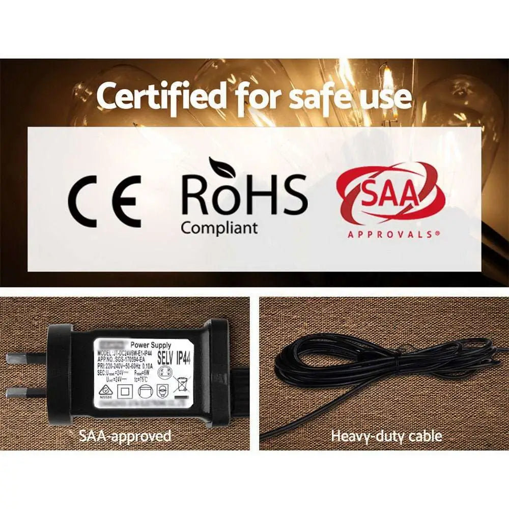 Our Festoon String Lights are great not only for wedding and birthday parties or special events, but also for creating a warm, inviting ambience with its bright and mellow glow. Suitable for both indoor and outdoor use, its IP44 rating means that it can be used in the rain and all weather conditions. Each bulb draws a very low voltage and is placed 90cm equally apart from each other throughout its 41m length for an even distribution of illumination and brightness. Not least, the each bulb has a 20,000 hours lifespan so that you can get to use the string lights for quite a while.