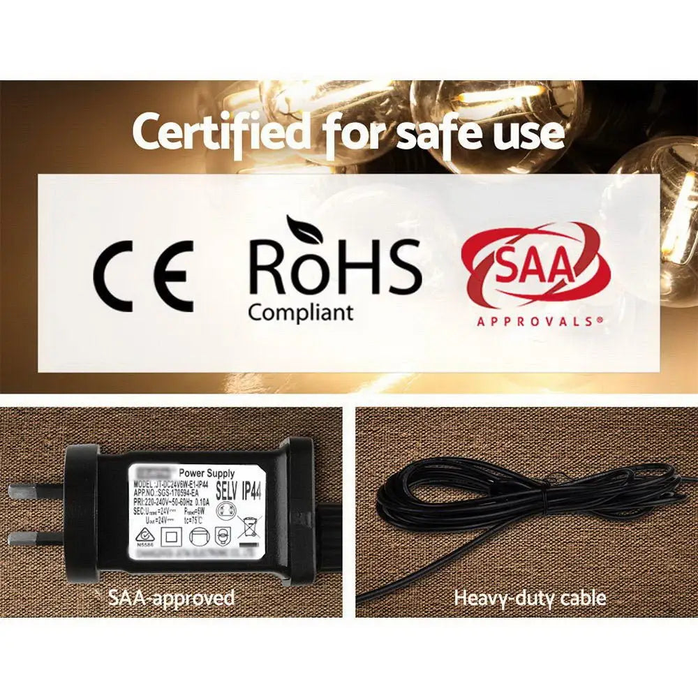 Our Festoon String Lights are great not only for wedding and birthday parties or special events, but also for creating a warm, inviting ambience with its bright and mellow glow. Suitable for both indoor and outdoor use, its IP44 rating means that it can be used in the rain and all weather conditions. Each bulb draws a very low voltage and is placed 90cm equally apart from each other throughout its 50m length for an even distribution of illumination and brightness. Not least, the each bulb has a 20,000 hours lifespan so that you can get to use the string lights for quite a while.