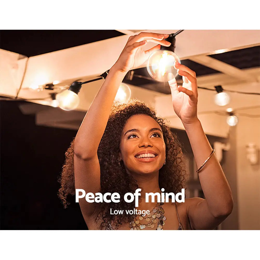 Our Festoon String Lights are great not only for wedding and birthday parties or special events, but also for creating a warm, inviting ambience with its bright and mellow glow. Suitable for both indoor and outdoor use, its IP44 rating means that it can be used in the rain and all weather conditions. Each bulb draws a very low voltage and is placed 90cm equally apart from each other throughout its 77m length for an even distribution of illumination and brightness. Not least, the each bulb has a 20,000 hours lifespan so that you can get to use the string lights for quite a while.