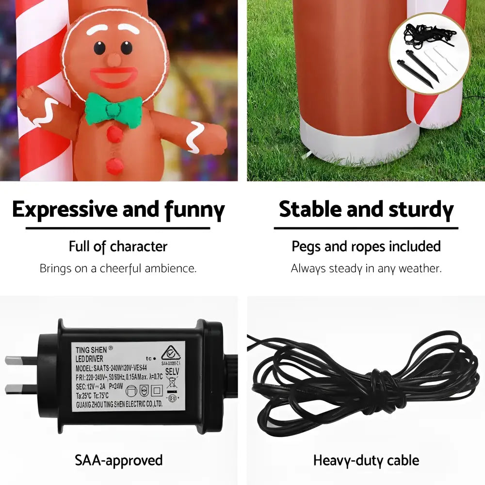 2.8M Christmas Inflatable Archwary Ginger Illuminated Decorations