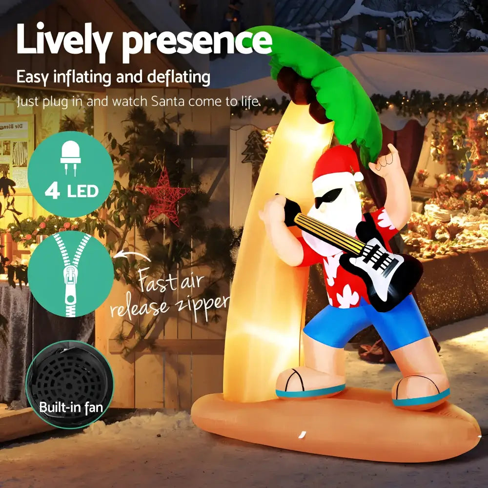 2.1m Christmas inflatable featuring Santa with guitar on beach