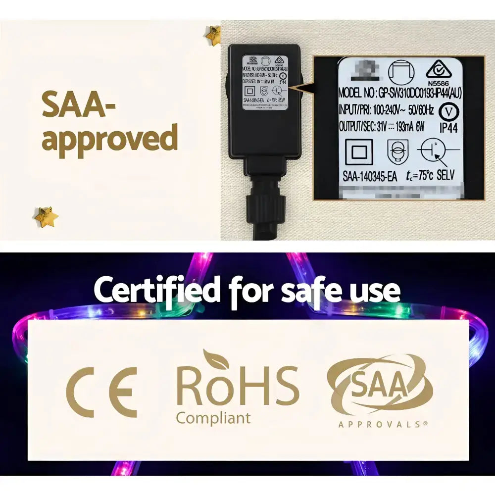 Bring the brilliance of Christmas to your home with our mesmerising LED Christmas Tree. A rope light with 36 multi-coloured LED bulbs per metre spirals up the tree-shaped metal frame to the star on top. The LED bulbs flash brilliantly to light up your festive spirit, and you can adjust the speed to suit your preference. The 8m long power cable gives you more flexibility on where you can set up the tree. Place it indoors in your living room, or outdoors in the front yard for all your neighbours appreciate. Create a lively and bright Christmas ambience throughout the season.
