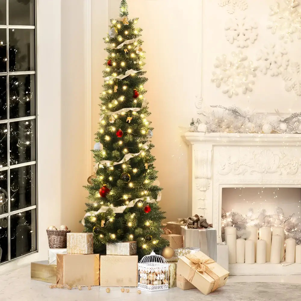 1.8m Pre-Lit 200 LED Lights Christmas Tree Decorations