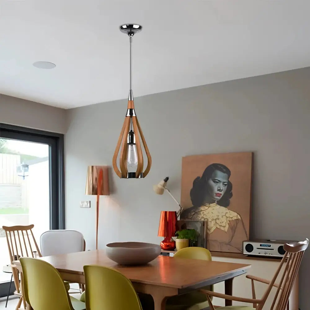 For a modern minimalist statement with natural warmth, the Karu 1-Light Timber Pendant Light brings sculptural elegance to your interior. Crafted from solid timber with a stunning golden oak finish and polished stainless steel accents, its handcrafted, teardrop-inspired frame adds a refined yet organic presence to any space.