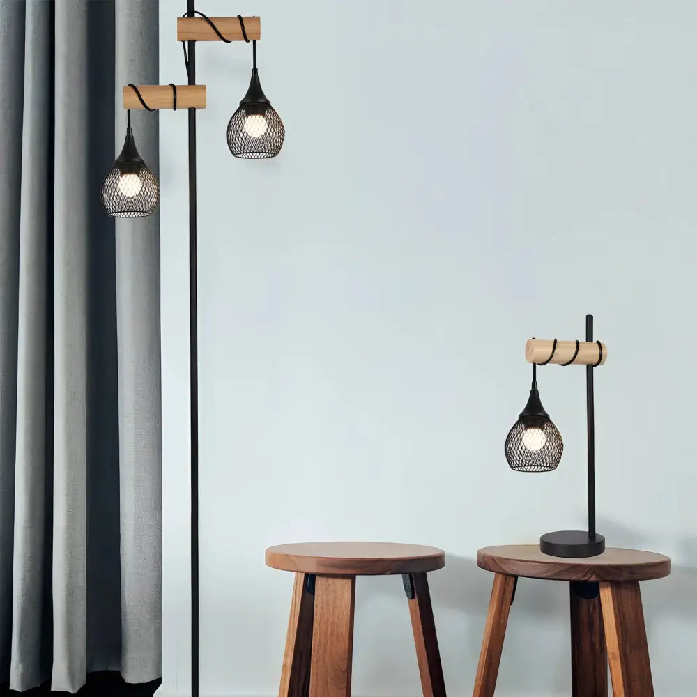 Add a stylish industrial touch to your home with the Lars Floor Lamp by Lexi Lighting. This contemporary piece artfully combines black metal, warm timber, and exposed cage-style lights to create a visually striking lighting solution. With a sturdy round base and a solid vertical pole, the Lars features a unique horizontal timber bar that supports two pendant-style cage lights—bringing layered texture and character to your space.