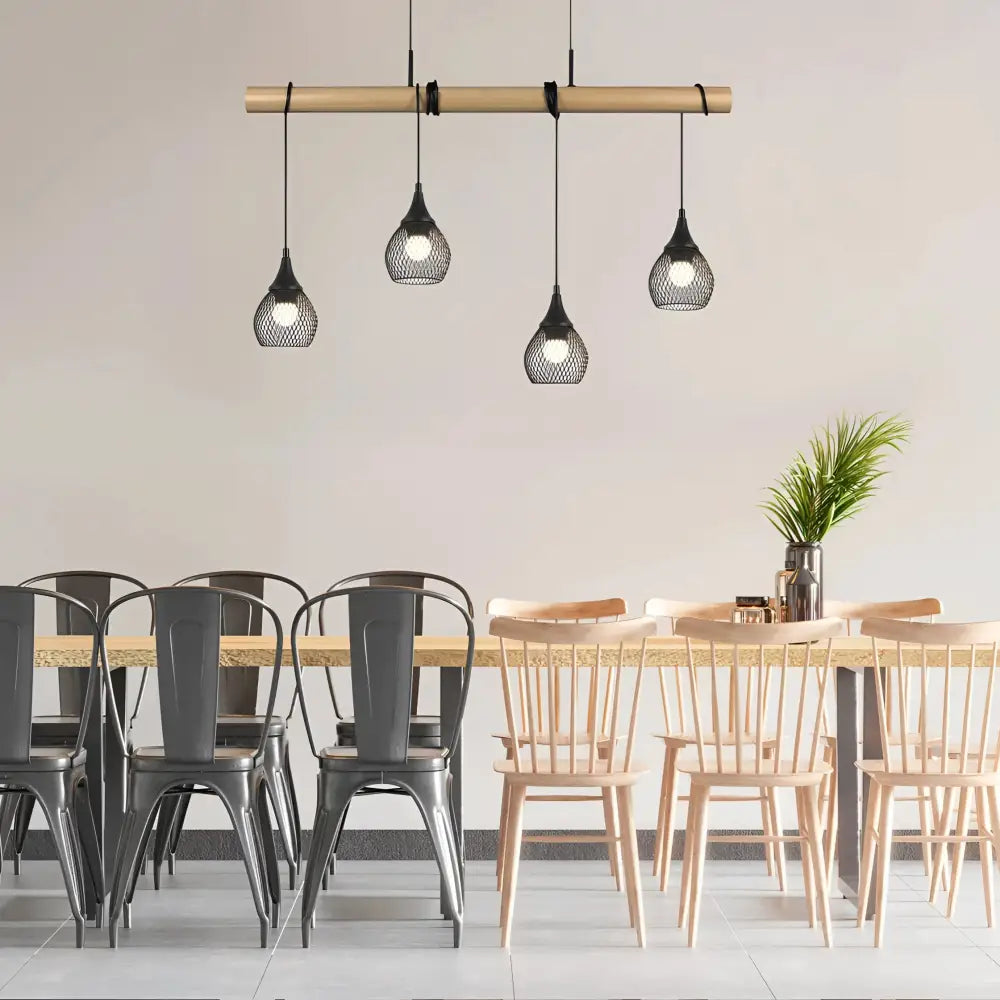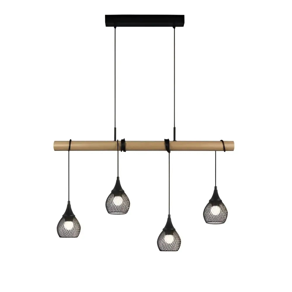 Elevate your space with the Lars 4-Light Pendant Light by Lexi Lighting, a striking blend of modern industrial and natural style. Featuring a sleek black rectangular ceiling mount and a beautifully finished timber bar, this pendant light suspends four mesh metal cage shades—each adjustable to your desired height by wrapping the cords around the timber bar.