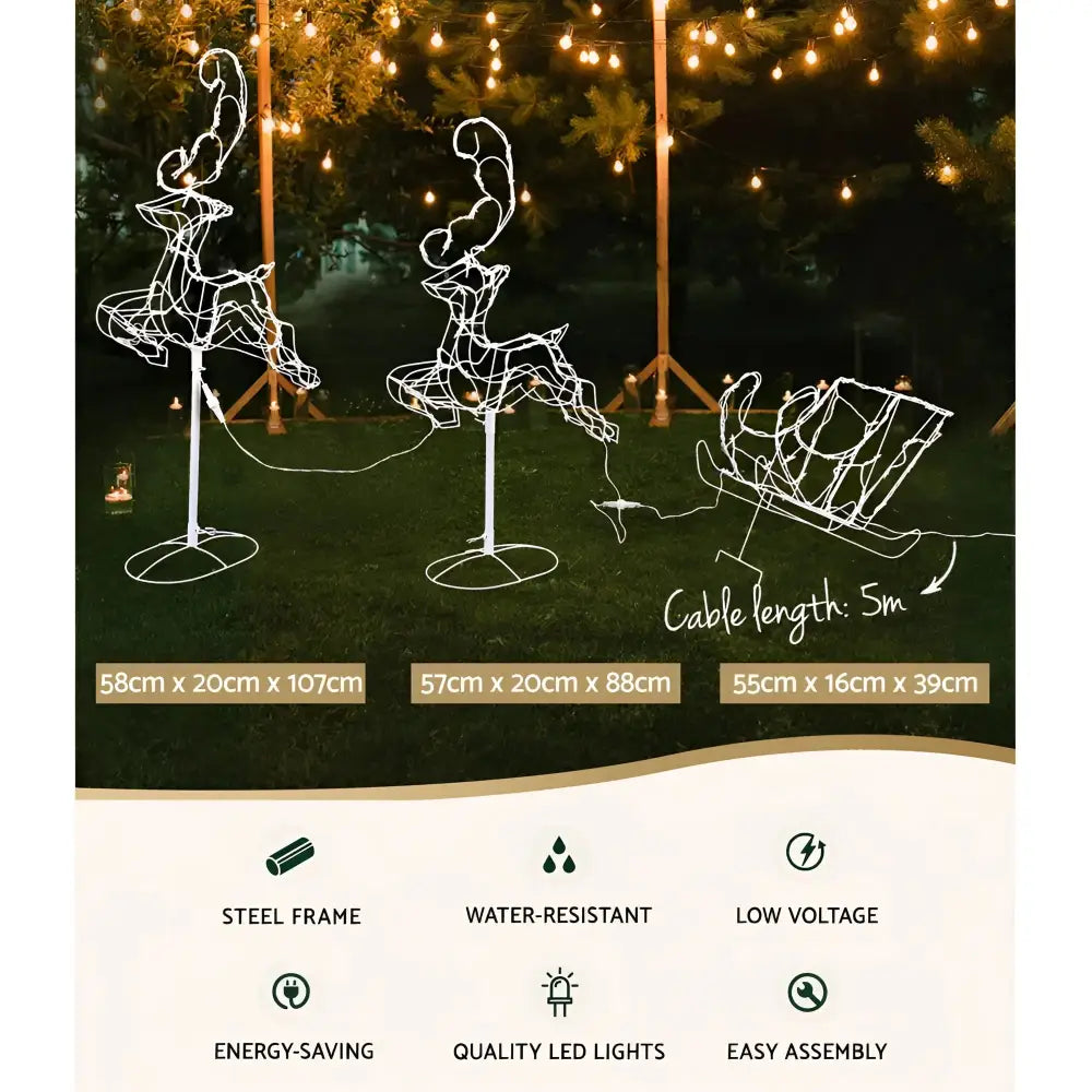 120 LED Christmas Lights Reindeer Sleigh Decorations