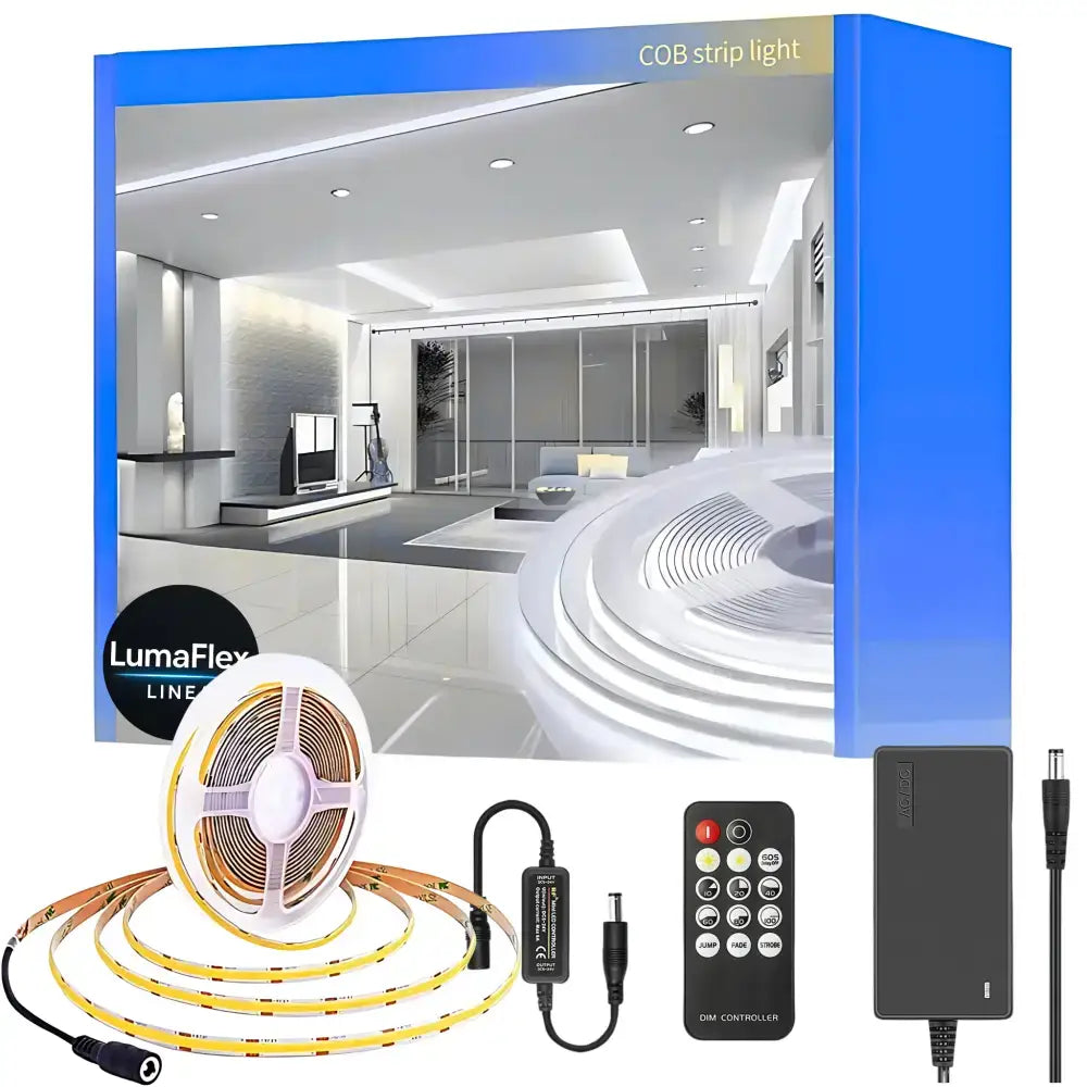 Transform your interior with the LumaFlex Linea COB LED Strip Kit, an eco-friendly solution designed for effortless DIY lighting projects. Experience a white, inviting glow, perfect for creating ambiance in bedrooms, adding task lighting to kitchens, or highlighting unique architectural features. Unlike traditional LED strips, this kit delivers ultra-bright, dotless illumination across a wide 180° beam angle, ensuring even light distribution.