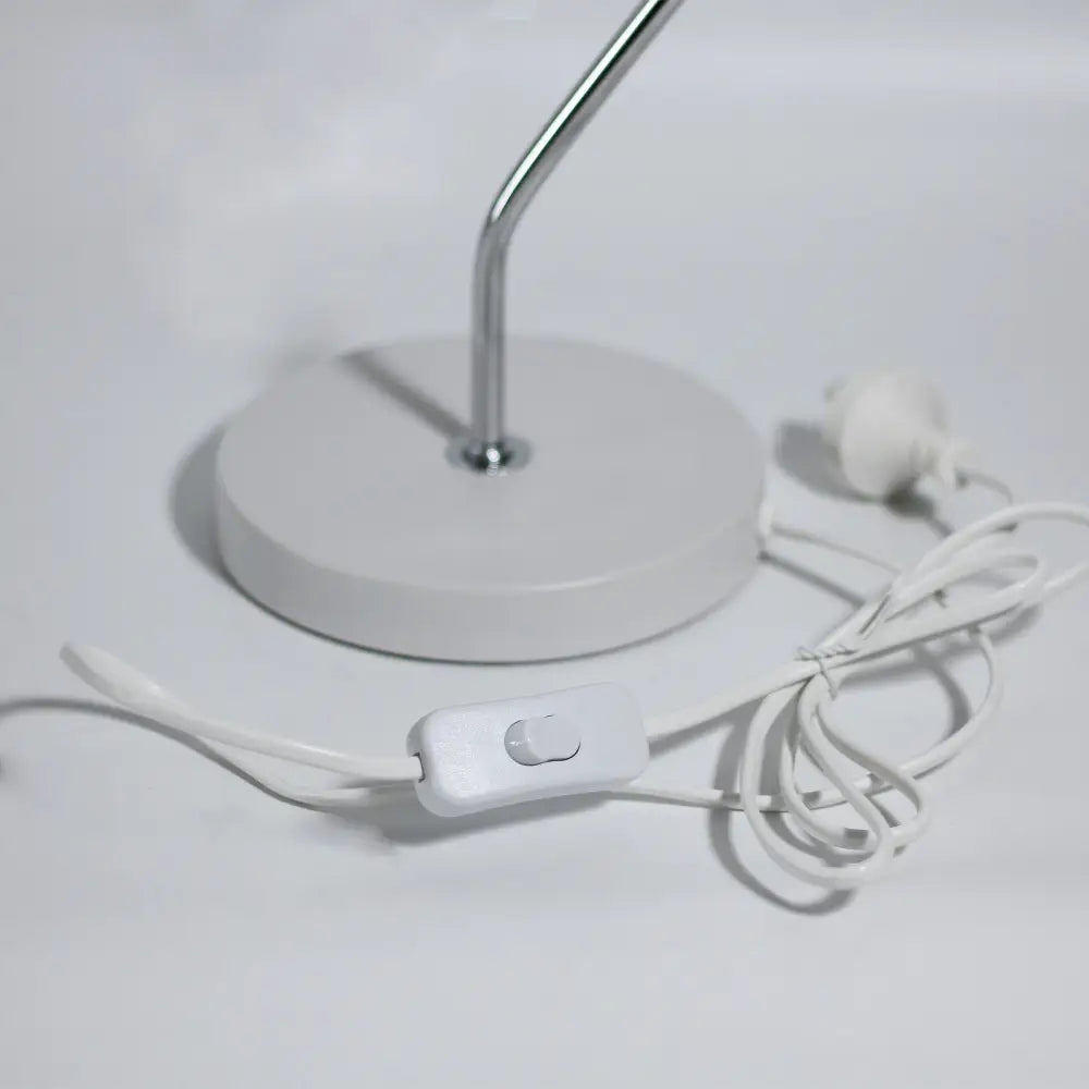 The chrome metal stand has two distinct bends, one moving away from the shade, followed by another moving back in its direction to add extra character to the lamp. Overall, the Abby Table Lamp is a wonderful modern lamp that would suit many home and office decors where it is used.