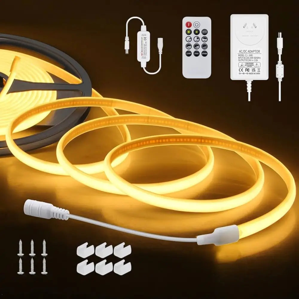 10m Kit – 10m COB LED strip, remote, 24V power supply, 30 clips/screws