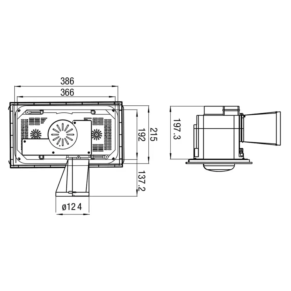 - Unit dimensions: 386mm (L) x 215mm (W) x 197mm (H)