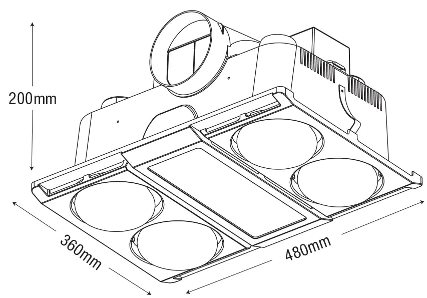 - Fascia Size: 480mm (L) x 360mm (W) x 200mm (H)