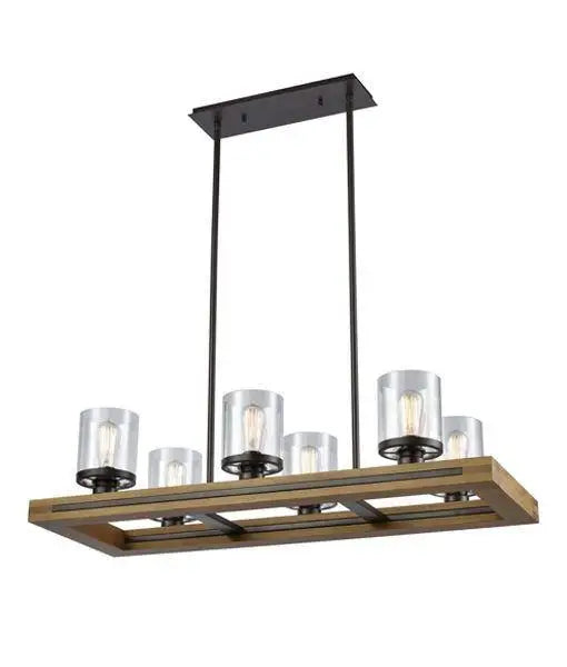 METI Warm Chestnut Wood 6 Light Rectangular Pendant - METI01