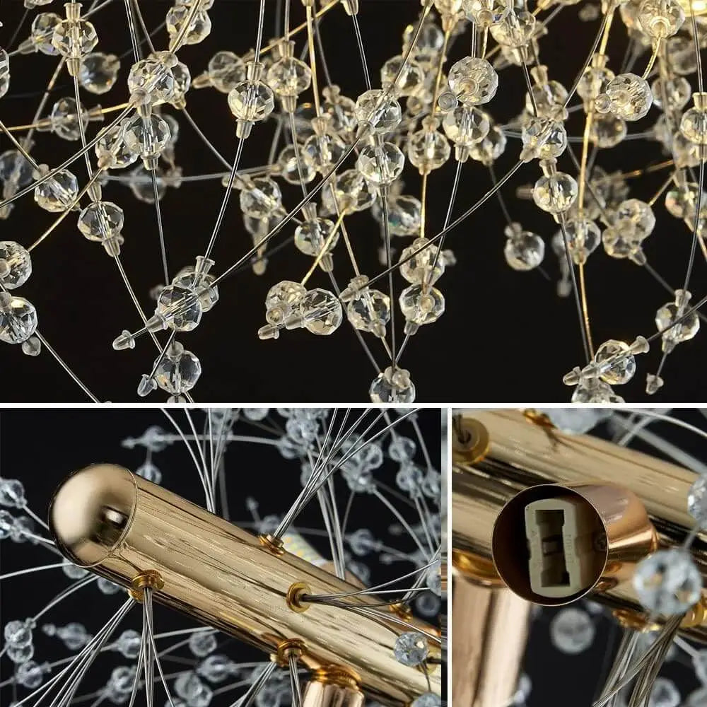 - Experience a romantic and luxurious atmosphere with this unique firework rectangle chandelier. Crafted with beautiful and elegant dandelion firework shape, it is adorned with clear K9 crystal flash that will give off a bright and captivating light. Transform your home with this one-of-a-kind piece and add a touch of sophistication to any room.