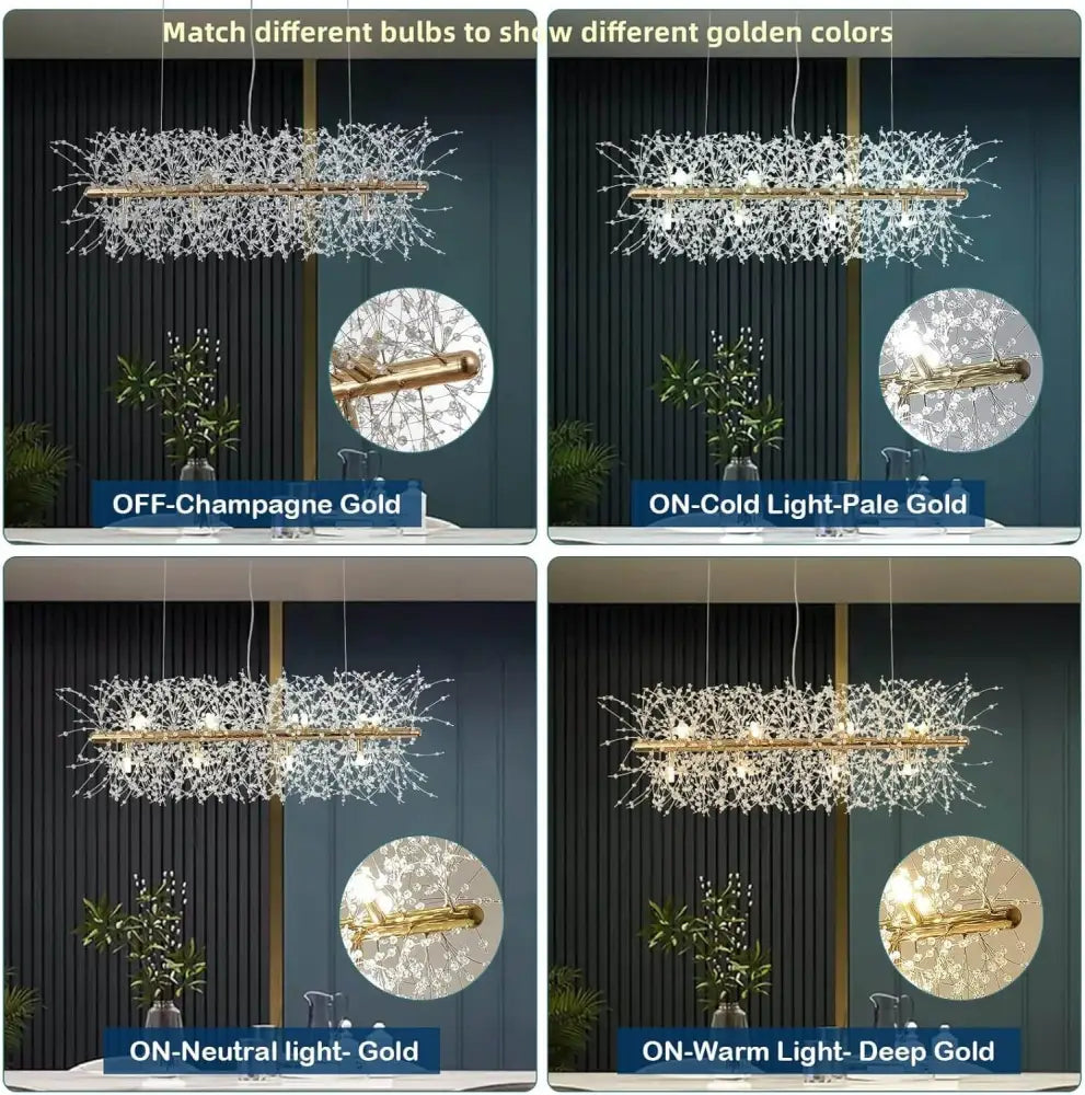- Experience the perfect lighting for any occasion with this modern chandelier. With three adjustable colors - warm light, white light, and natural light - you can create the perfect atmosphere for any setting. Enjoy a cozy romantic vibe with warm light, brighten up the room for work or reading with natural light, or switch to white light for a classic lighting effect. With just one chandelier, you can have it all.