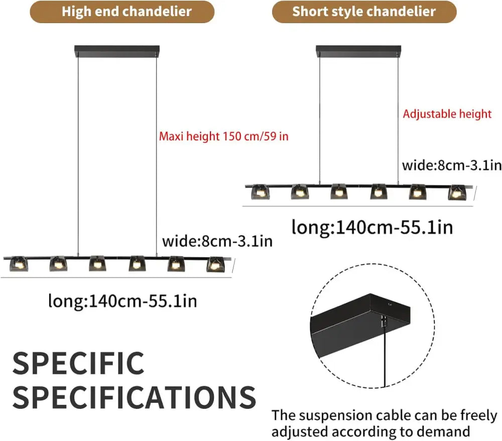 - This kitchen chandelier is crafted with superior quality materials for lasting performance. The electroplated black frame and glass lampshade have a finely polished surface with a protective coating, making it easy to clean and maintain. It is corrosion-resistant, fade-proof, and designed for superior light transmission and heat dissipation. Enjoy a long lifetime with an average lifespan of 50,000 hours.