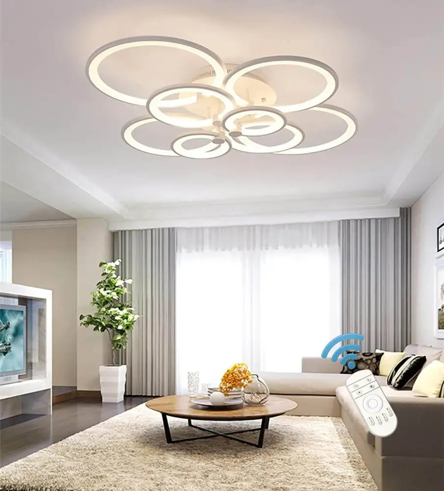 - This ceiling light features a unique two-layer design for a more dynamic look. Its modern shape with leaf-like triangle rings creates a beautiful flower-like effect that will bring a touch of elegance to any room. Perfect for living rooms, bedrooms, dining rooms, kitchens, and more.